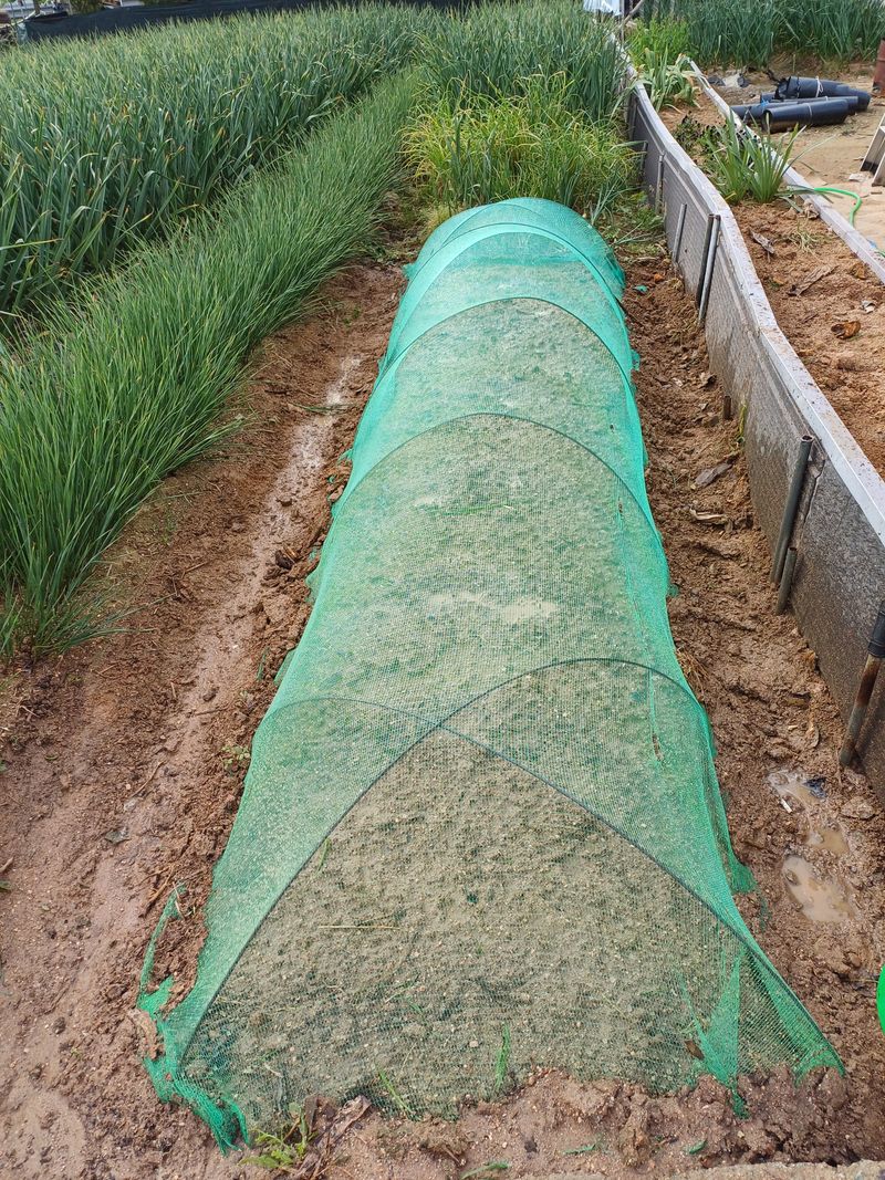 초하열무 2차 파종 완료 더워지면 해충발생을 방지하기위해 공사장안전망 설치