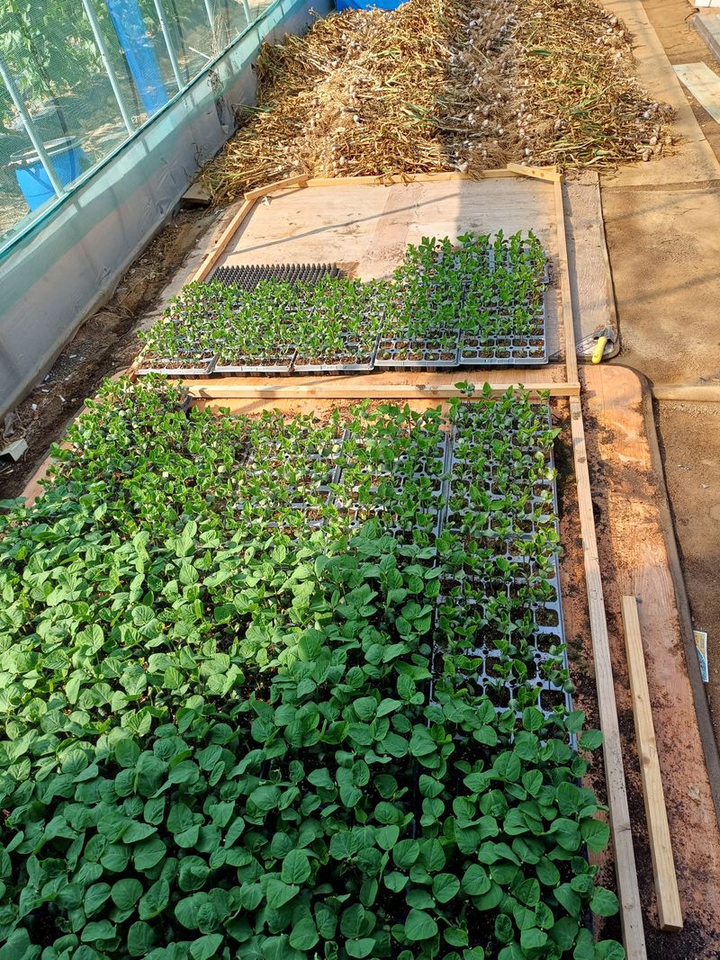 1차50트레이 두알씩 파종. 쪽파수확. 태강참깨 모종 노지 정식중
