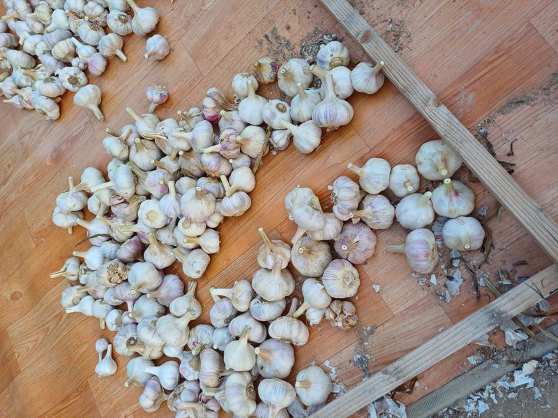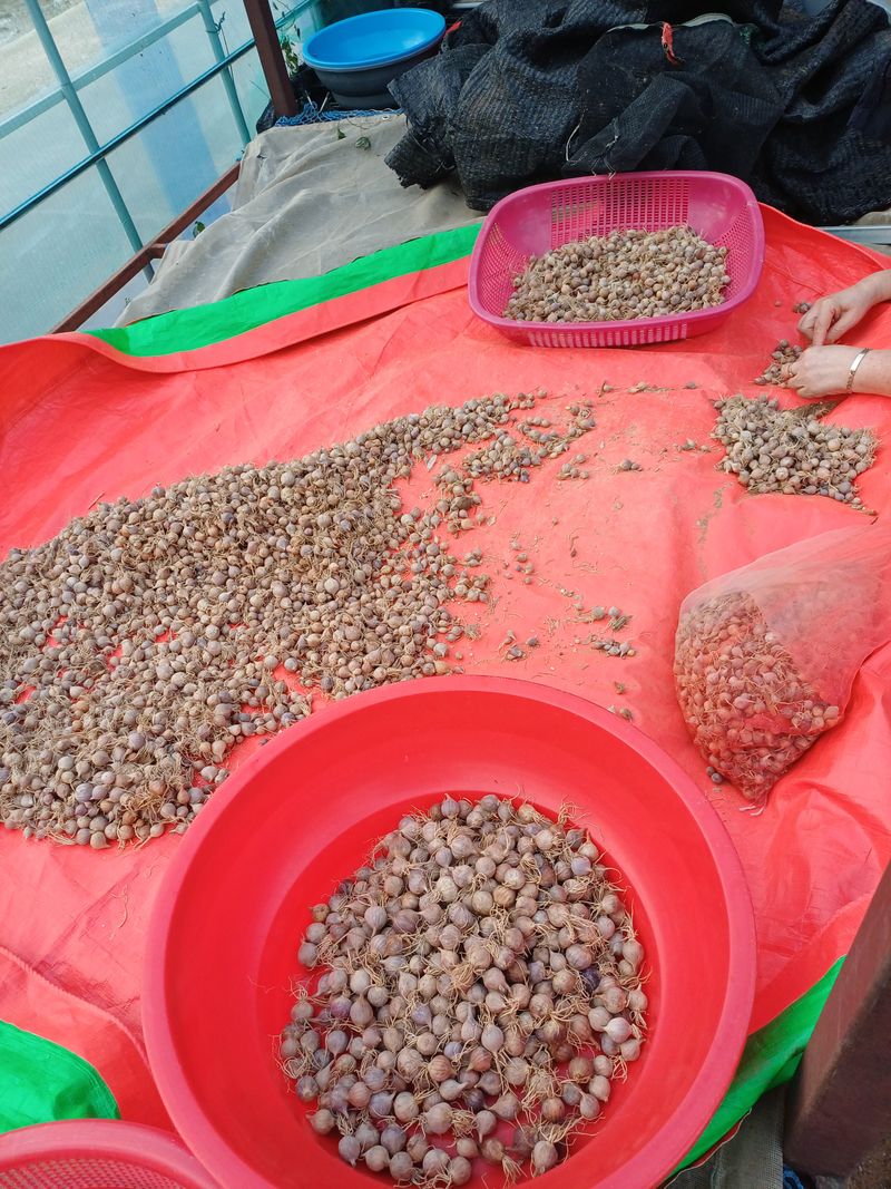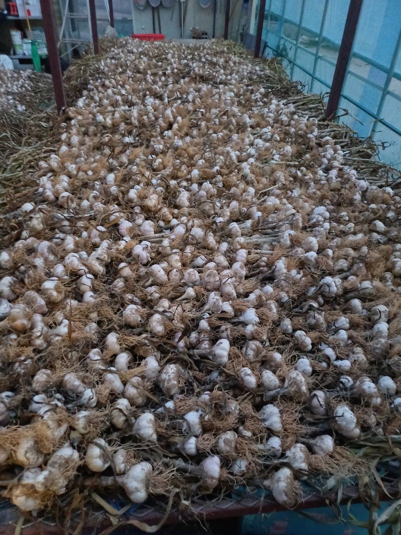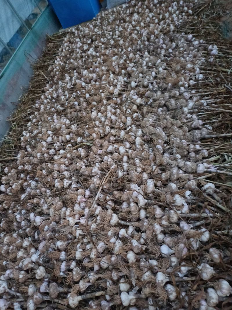 장마비소식에 서둘러 수확한 홍산마늘 하우스로 이동 건조중. 건조후 꼭지 치고 뿌리자르고 아직도 할이이 많네요