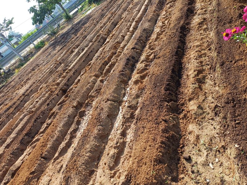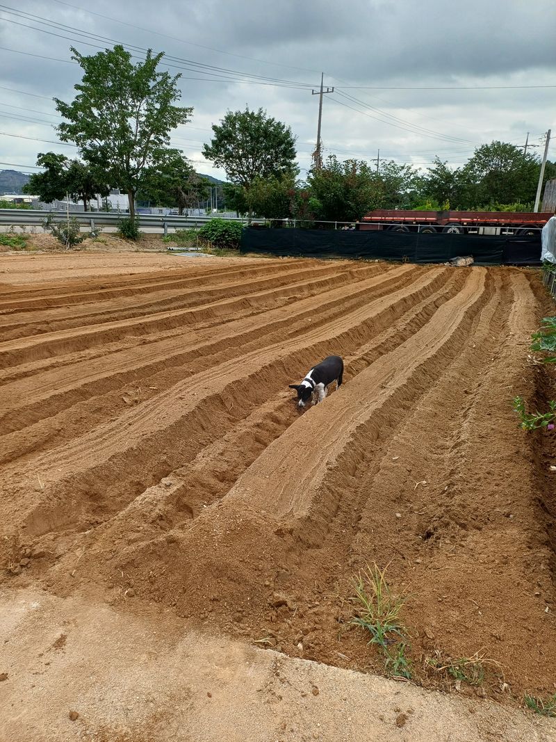 참깨 베어내고 폐화석칼슘1포. 입상석회고토 2포. 퇴비13포. 유박 4포 좀 과하게 마늘 밭 예정지 살포후 로타리 작업! 9월중순 살충살균제및 완효성비료 살포후 멀칭 파종 예정!