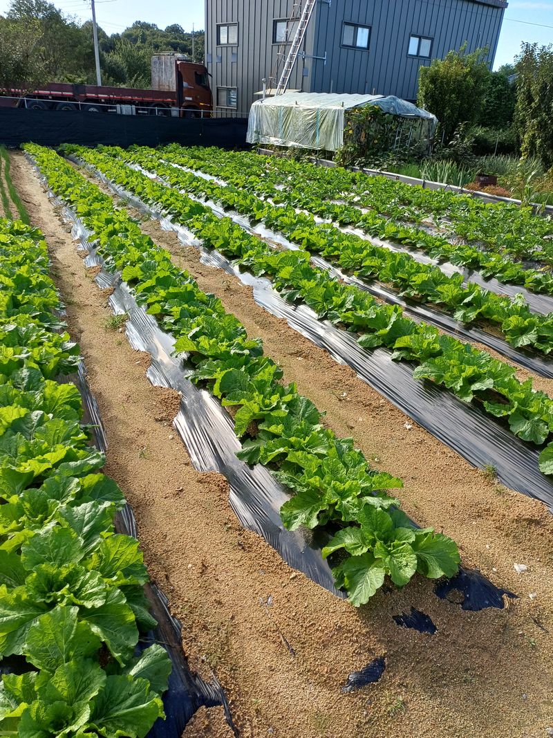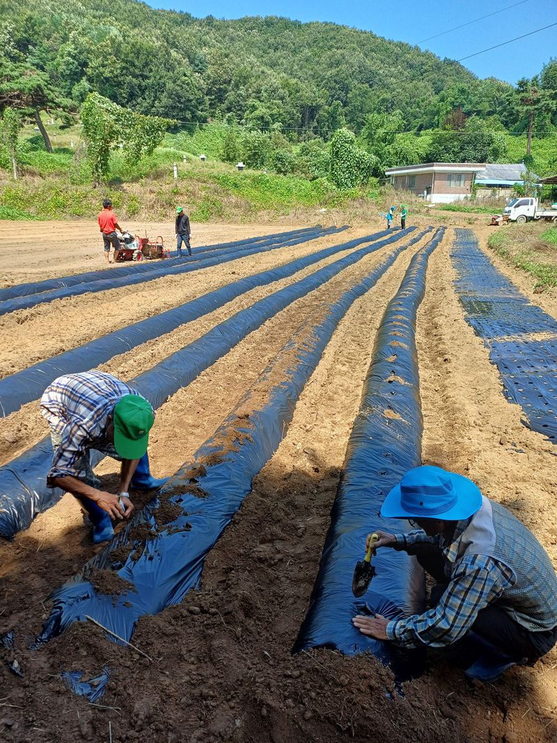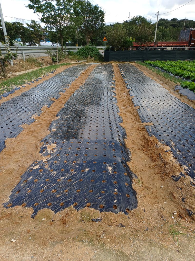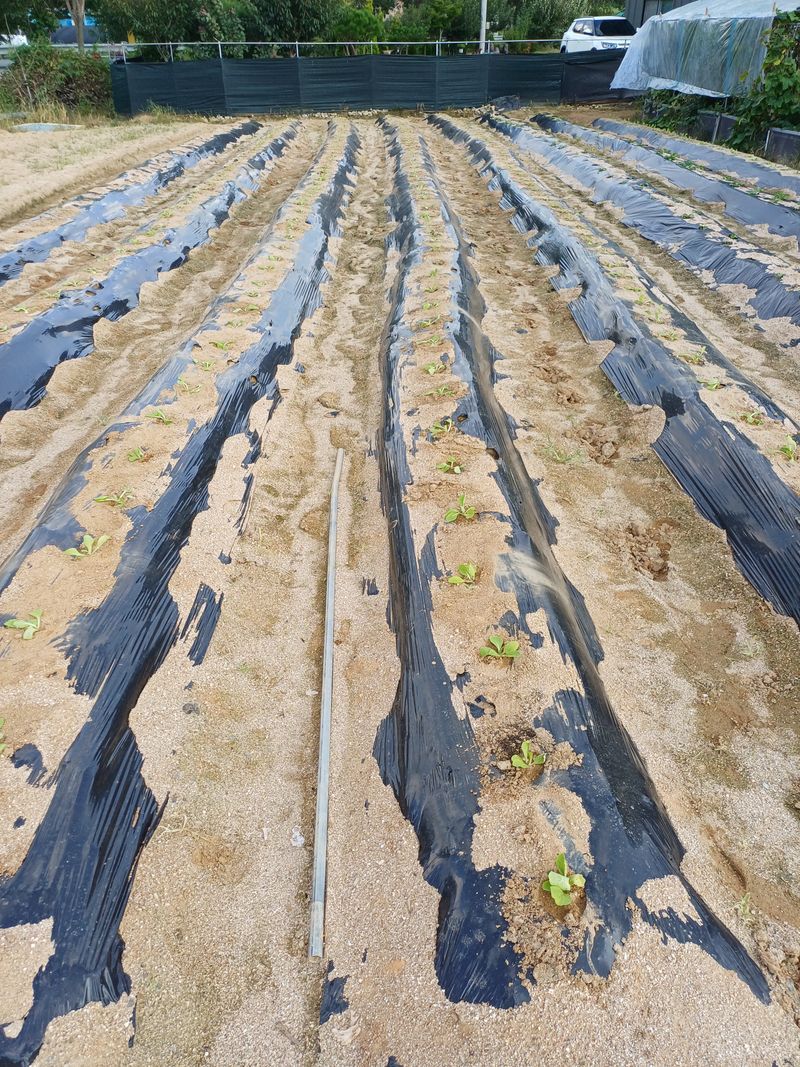 마늘밭 멀칭완료. 김장밭 바다물 미생물. 살포