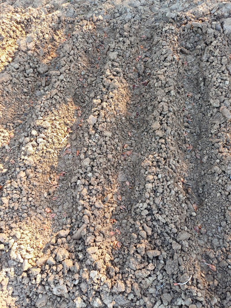 유박 밀 살충제 비료 살포후 무우씨 파종. 배추 두덕. 휴립 완료