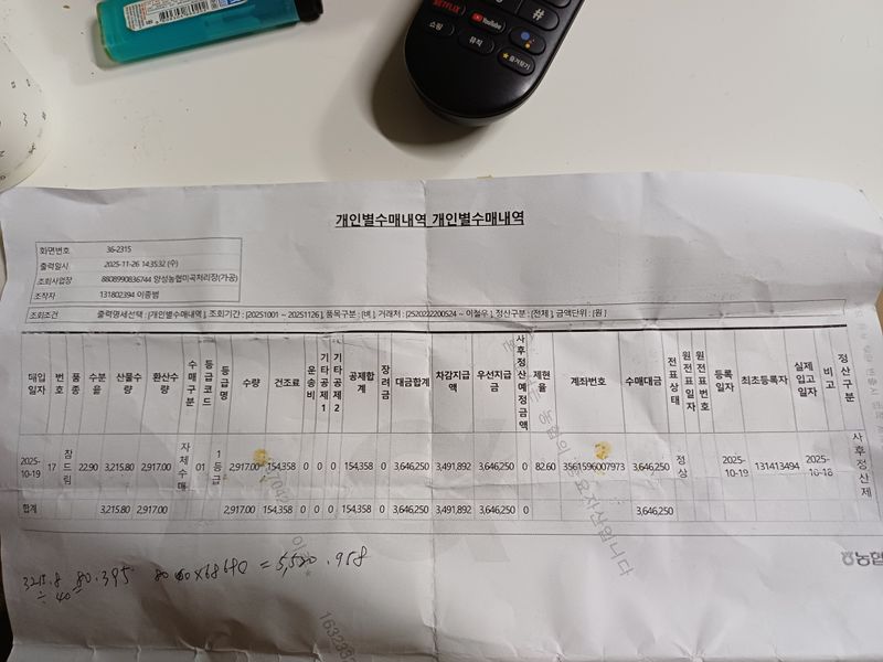 1차 18키로 수확후 건조완료 미생물 .미원 .설탕 살포완료 자닮유황 목초액 칼슘 살포 완료