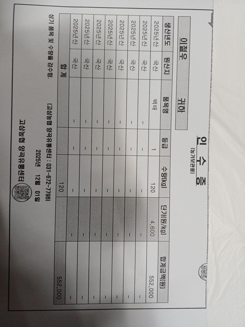 대원 백태콩 고삼농협 수매총 세가마중 120키로 만 수매. 1등급