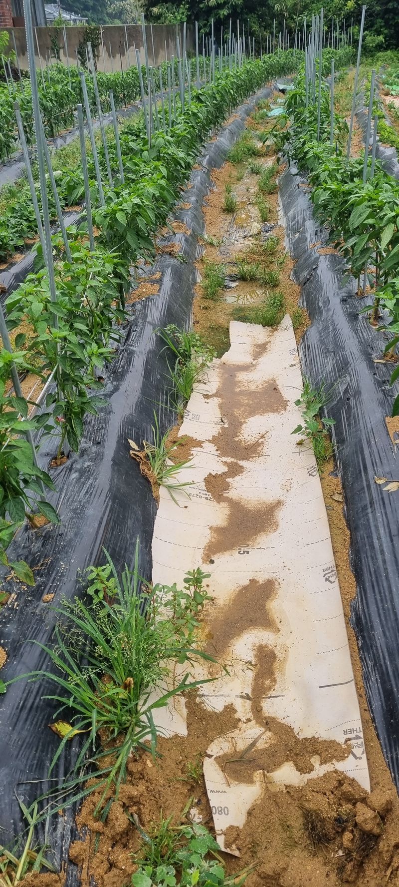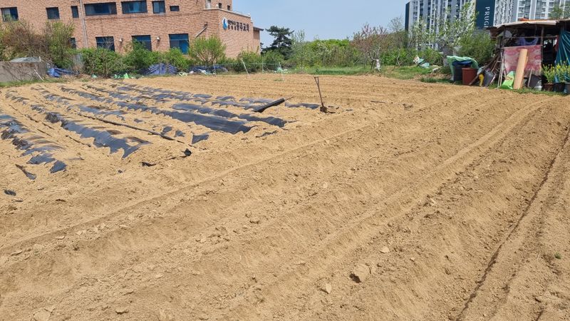 고구마 모종(베니하루카)5키로 2만여원에 주문 어제 비닐멀칭 베끼고 두줄 심고 서너줄은 그냥 꼬질대로 찔러 넣 음 . 그 나머지두둑은 비닐멀칭이 오래 되어 건조할까 걱정되어 우중에 한편씩 열어 비를 맞혀 덮을까함. 흙뭍은 손이라 항상 ...