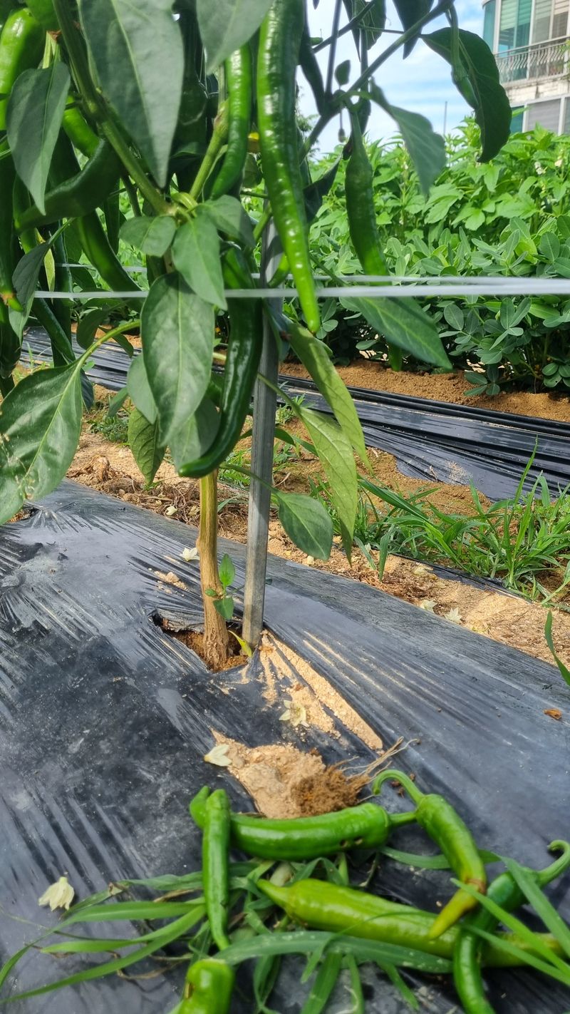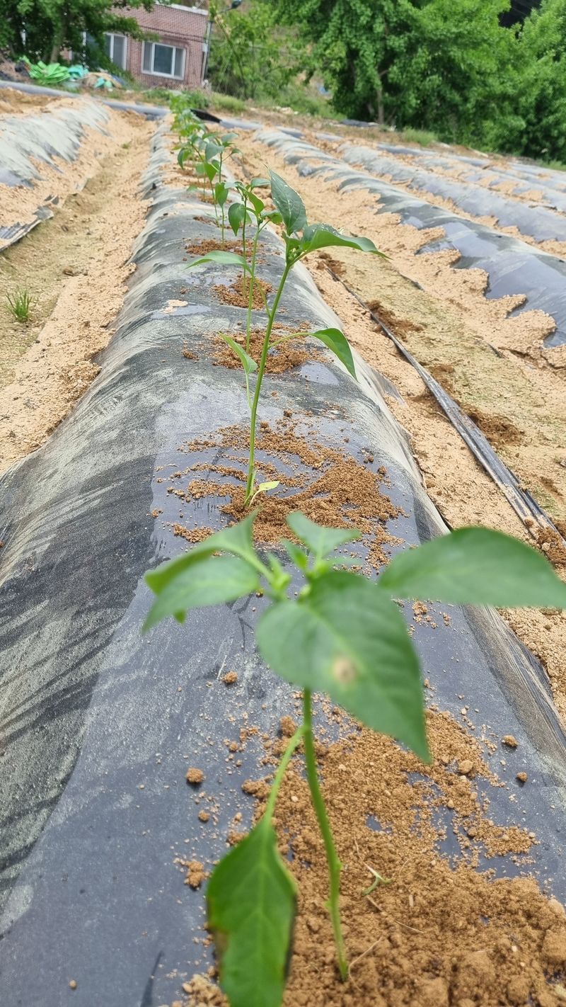 고추 50구 짜리 상태가 좋아 구멍 뚫고 요소 두스푼정도 넣고 물줌