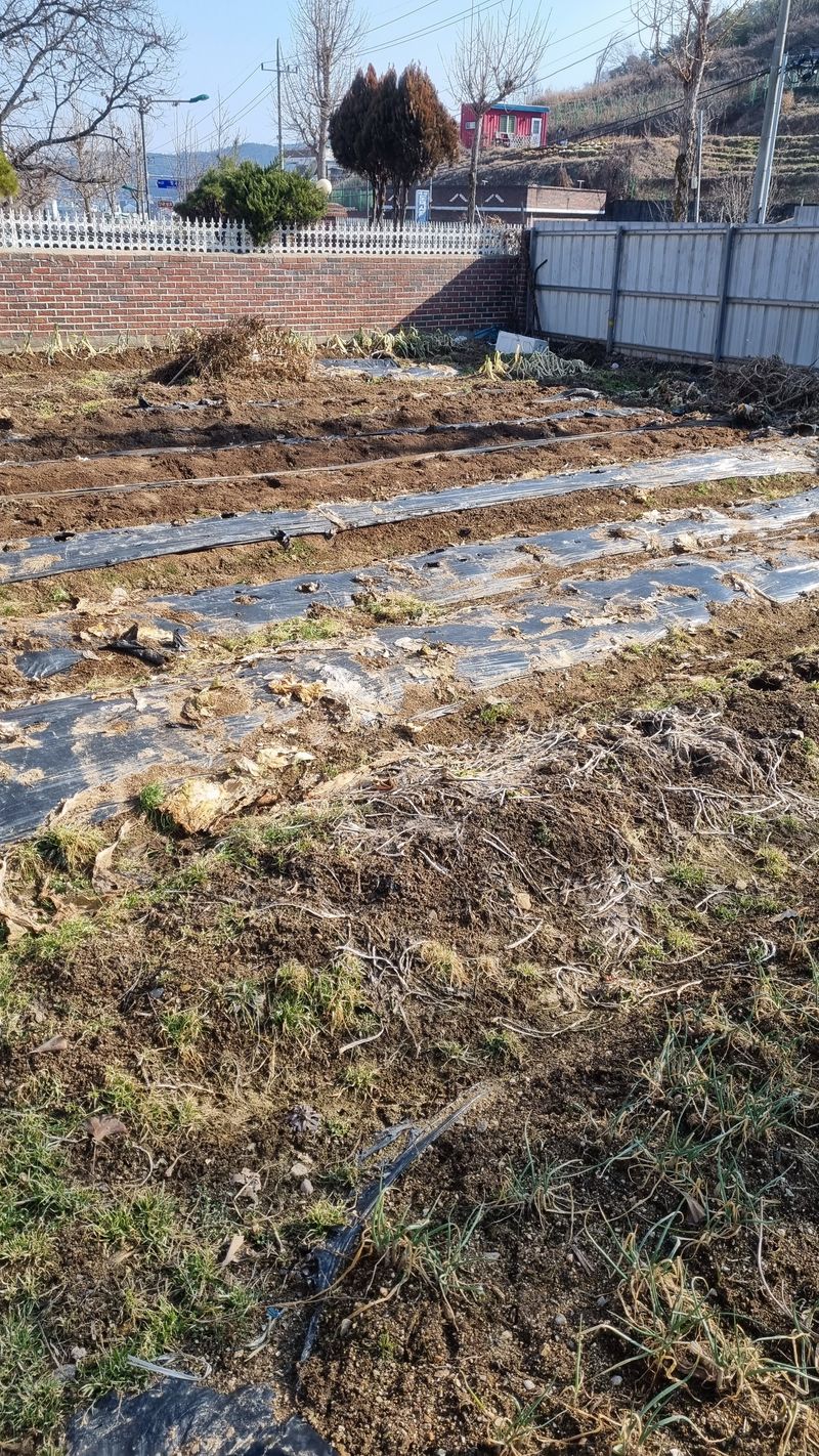 마늘 해마다 비닐멀칭을 벗기지 않고 수확해서 그런지 작황이 좋지 않아 올해는 벗기고 비료 조금 주고 매어 통풍도 시킴