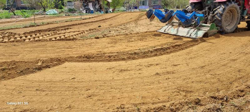 오늘 드디어 트렉터 작업으로 로타리 두둑을 만들고 비닐멀칭을 해 여러작물 재배준비를 하다 관리기로 작업 하면 회전반경이 좁아 반듯이 두둑을 만드는데 트렉 터는 너무 삐뚤어져 비닐피복이 어렵다. 20만원 주고 하느니보다 ...