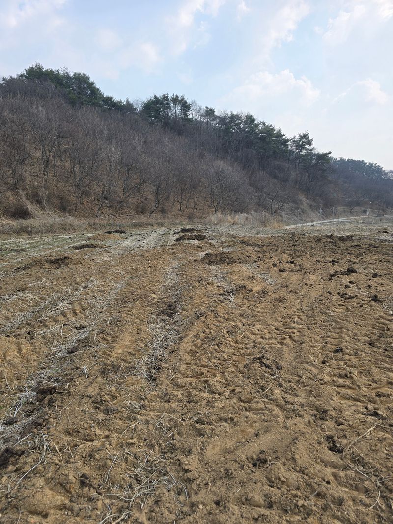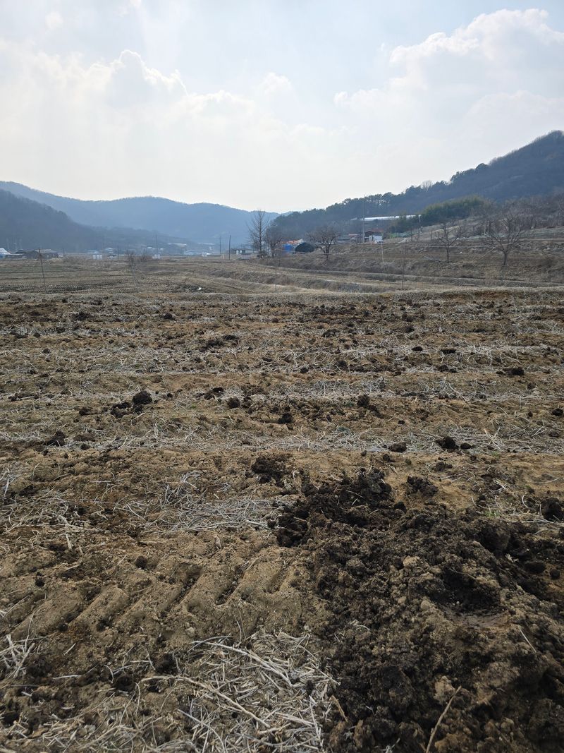 6마지기 밭 퇴비 살포 작업 마무리하고 트랙터로 경운 함. 비닐하우스 옆 400여 평 로타리 작업 함.