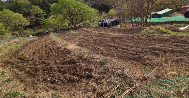오늘은 날씨가 좋아 밭에 가서 토마토와 가지 ㅡ오이ㅡ양배추등을 심기위한 밭고랑ㅡ이량만들기 작업중에 있답니다