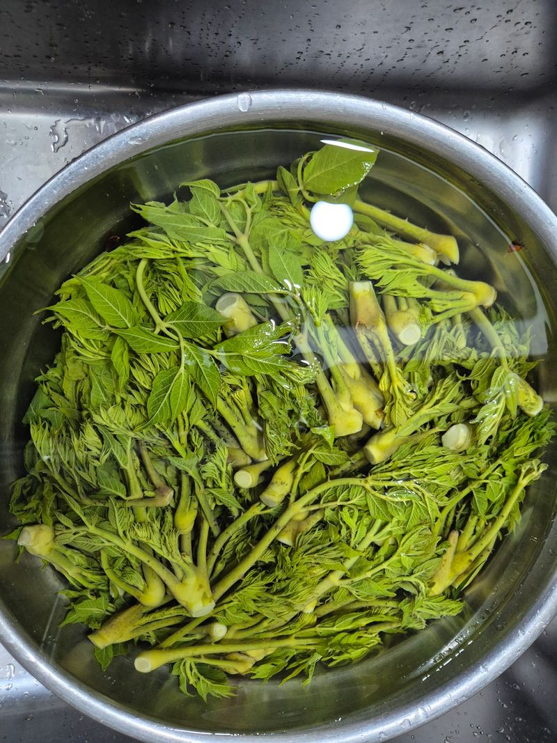밭두릅채치 후 삶마 대치고 하여 초장에 찍어 먹어보니 정말정말 맛있는 두릅입니다