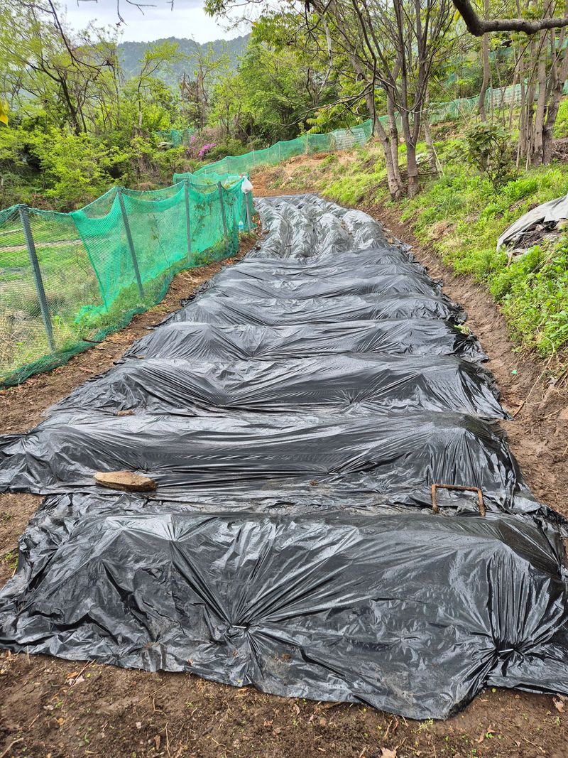 오늘은 터밭에 비가 내린후 비닐피복하기등으로 작업중에 있답니다 비가 촉촉하게 내리는 가운데 토마토ㅡ마디호박ㅡ당귀ㅡ야콘등을 심기 시작하여 답니다