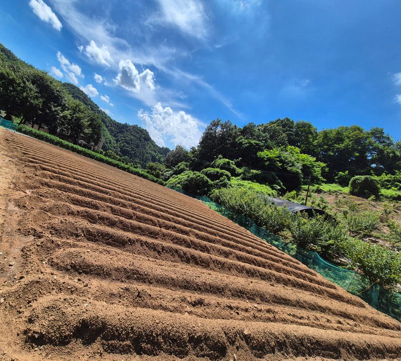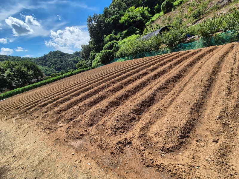 가을이 다가옴에 따라 배추와 무우을 육묘이식하기 위해 이랑만들기 해 두었다는 것을 보았습니다