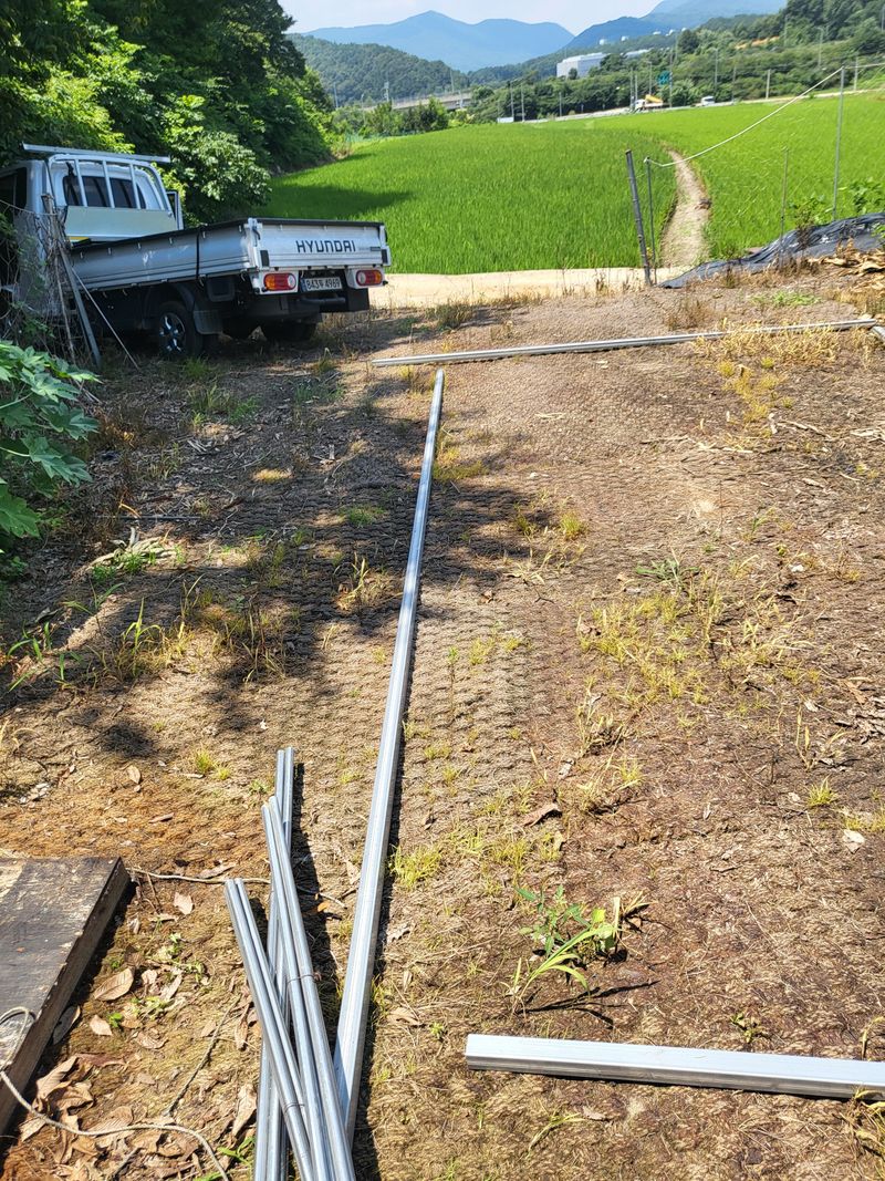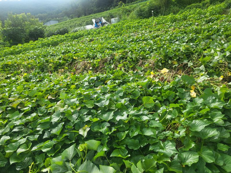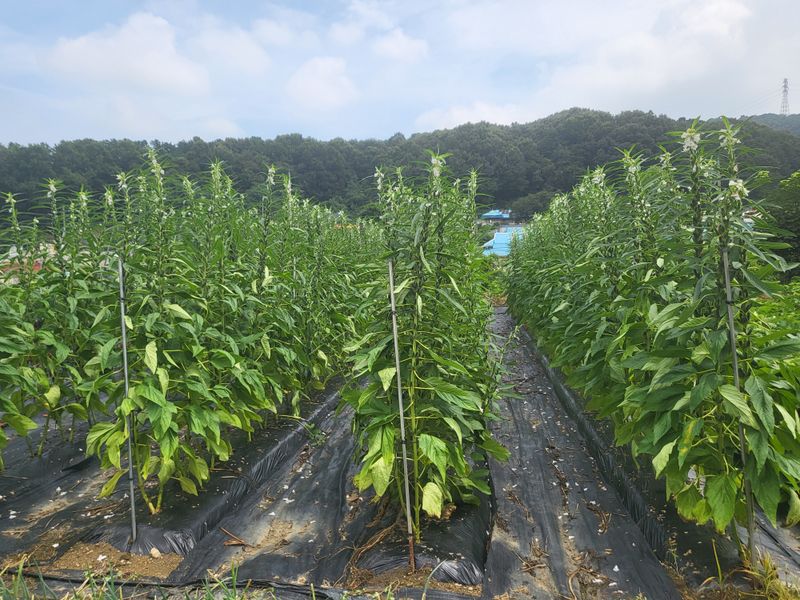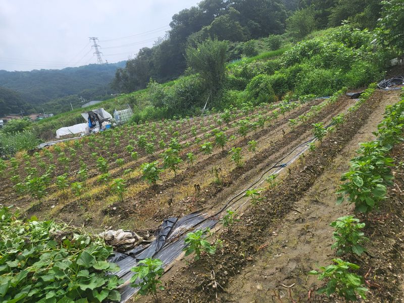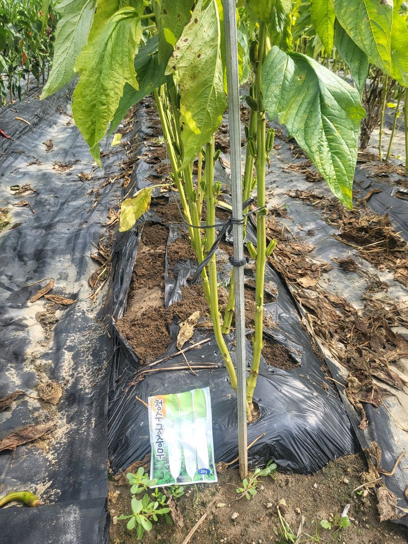 고추 칼슘관주와 고구마 물20L터에 황산가리 600g희석해서 옆면시비함