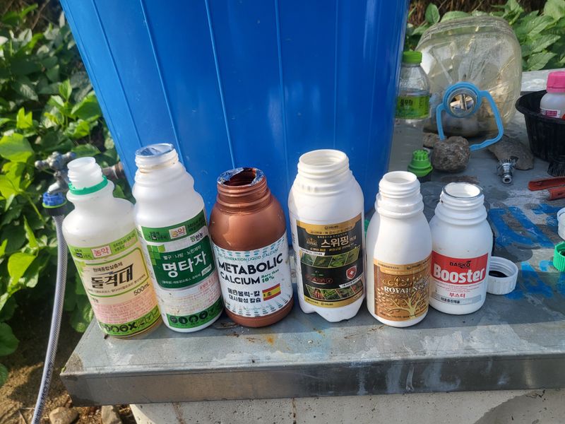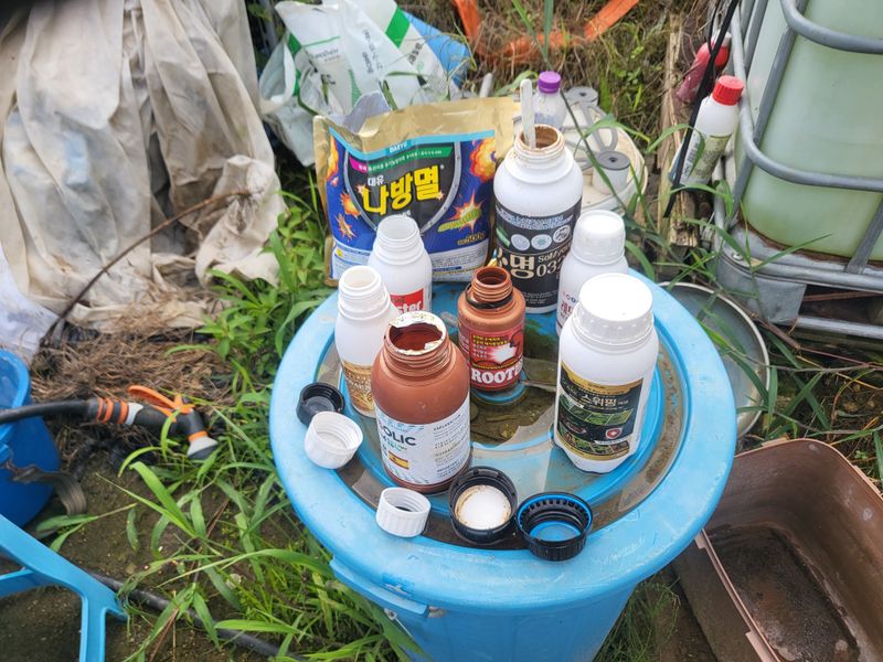 황산가리 600g 친환경 살충제 섞어 옆면시비
