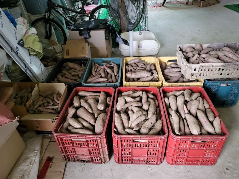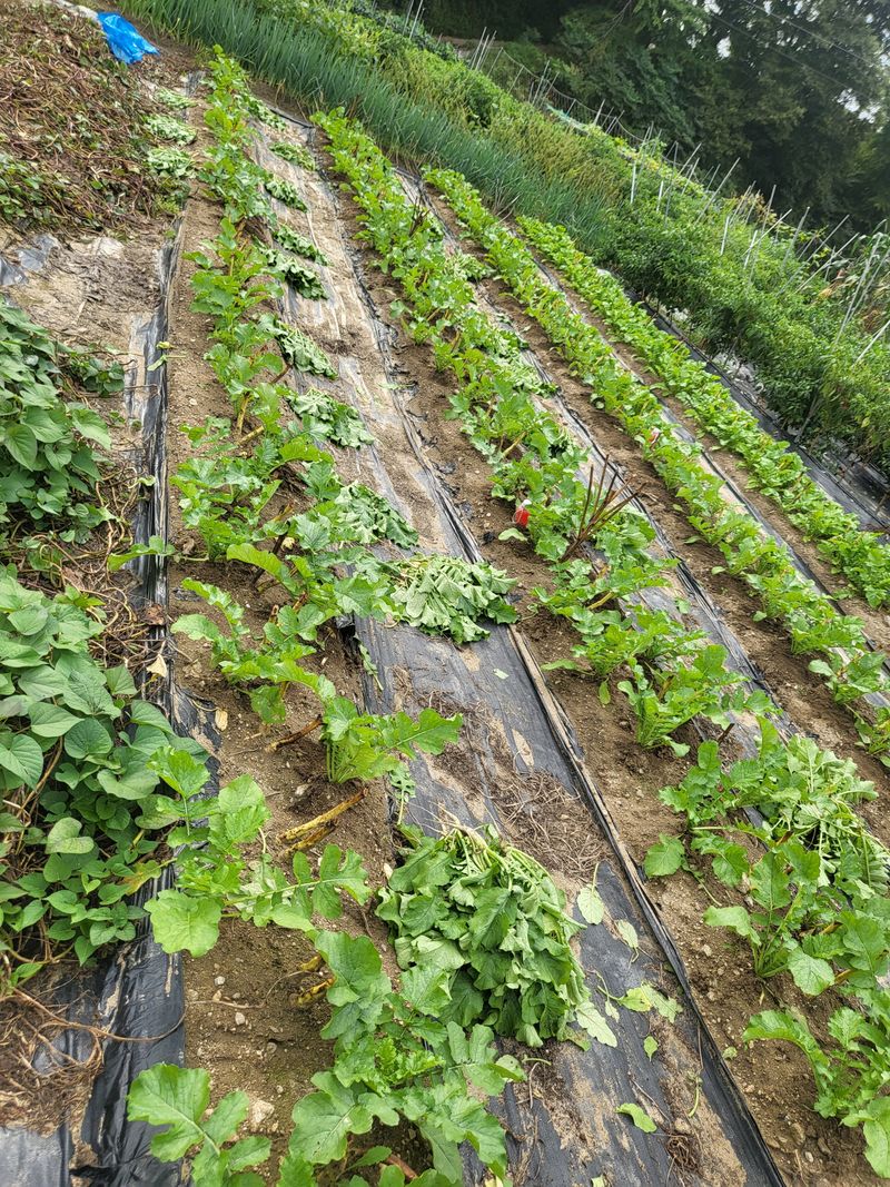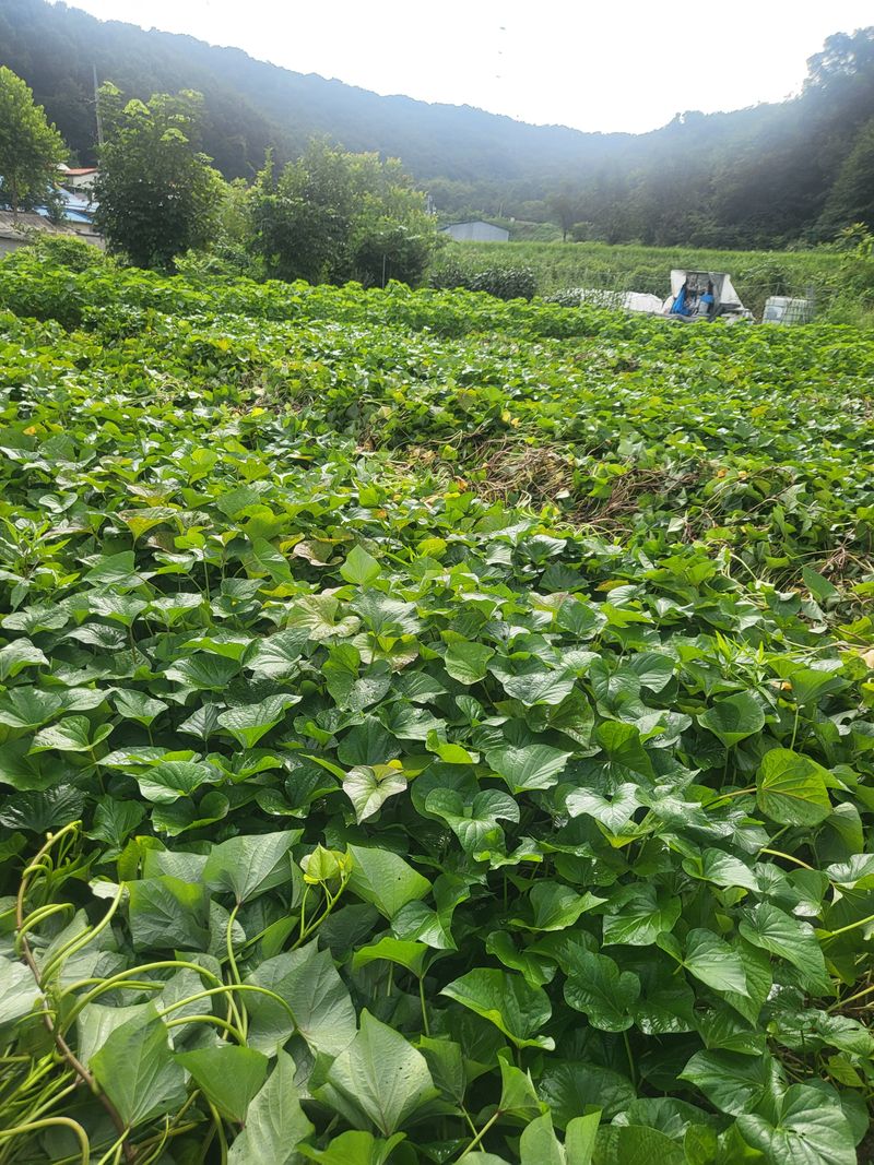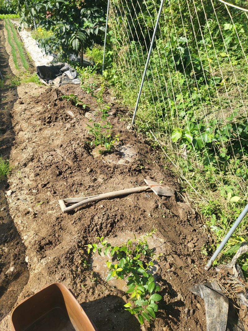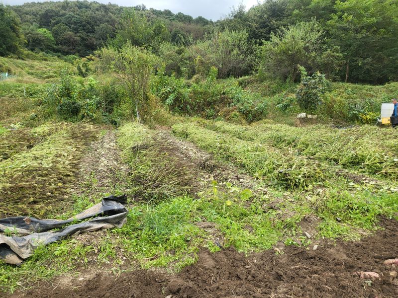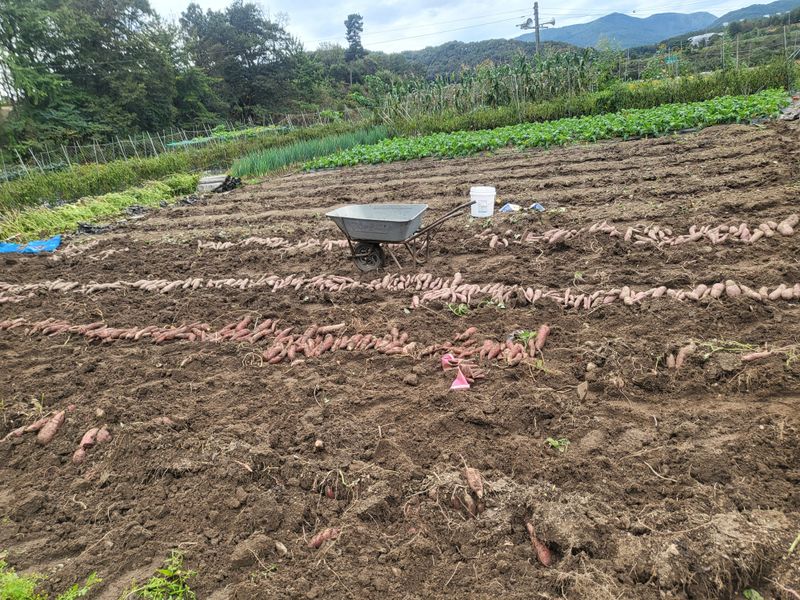 꿀고구마 한줄깨고 김장무우 솎음하고 북주기, 블루베리 4주심기