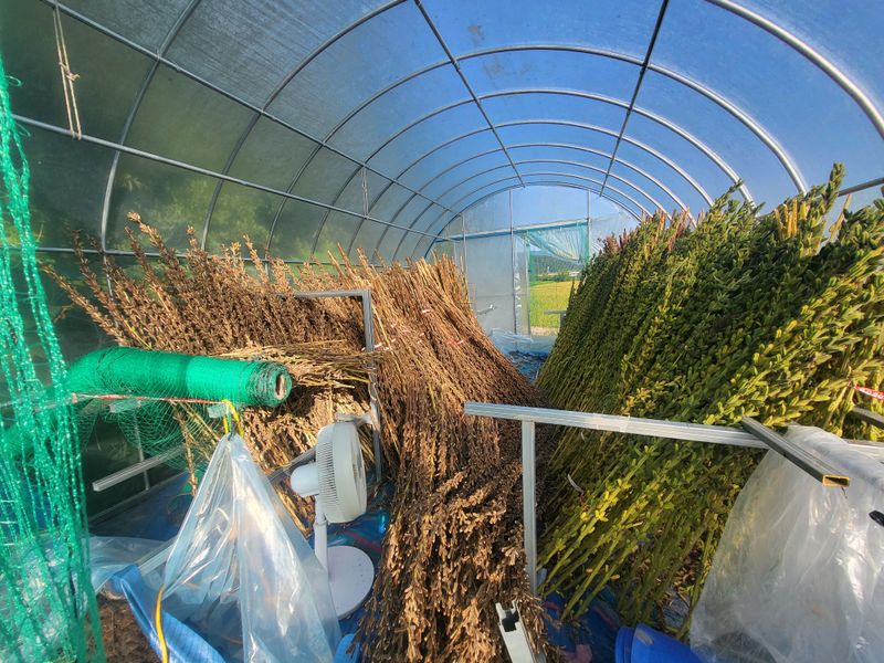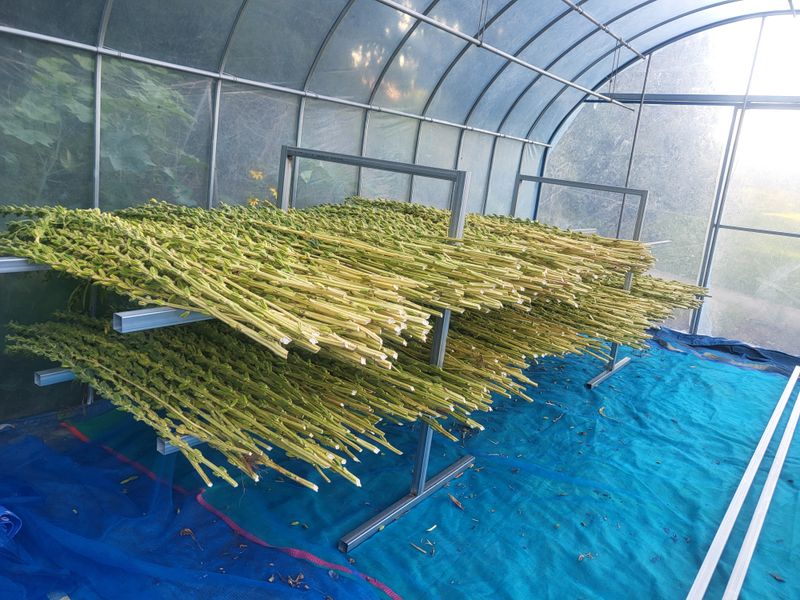 112일째 영웅참깨 1차 수확하여 비닐하우스에 널어서 말리기 2차수확은 월요일쯤 해야돌것 같다.