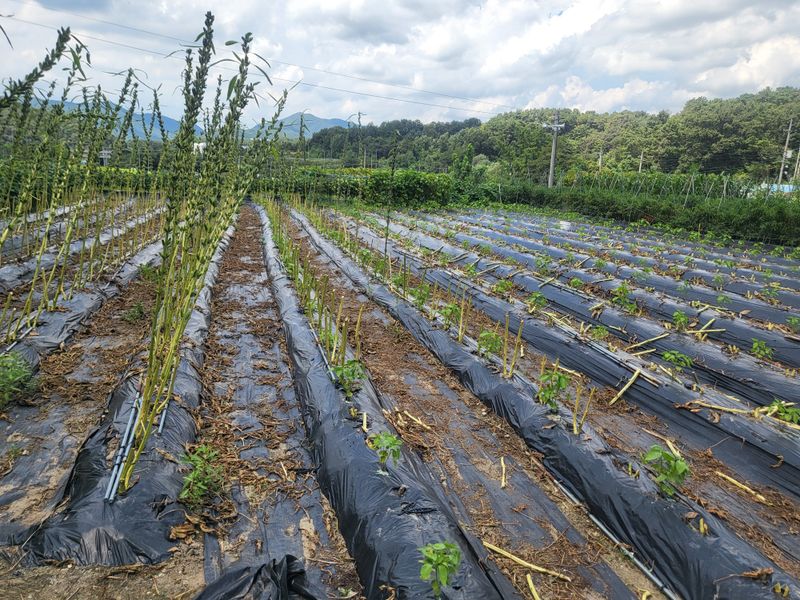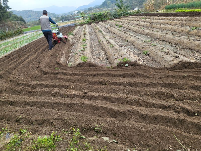 들깨수확한자리에 한지형 마늘 자리 만듬