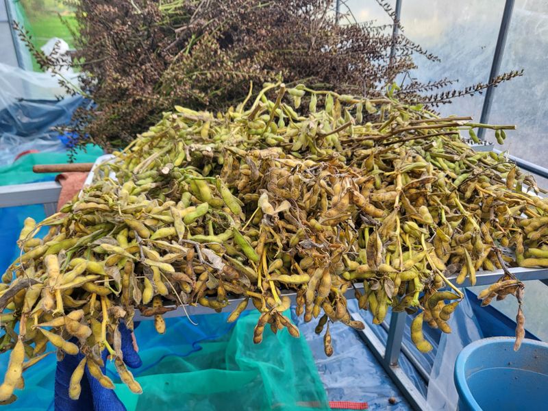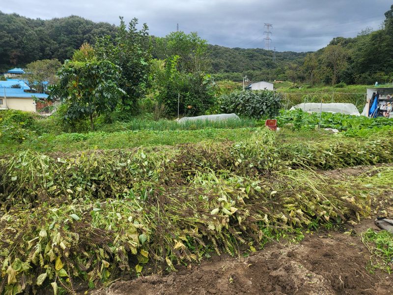 백태 수확 하였다. 비가 자주 오니 싹이 나고 있다.