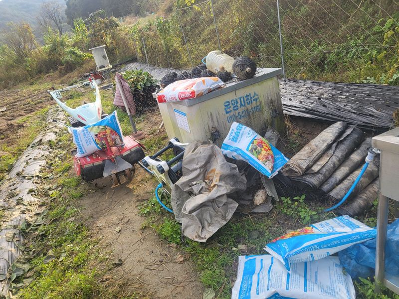 내일 비가 온다고해서 홍산마늘 두골랑 파종하고 제초제까지 뿌려줌