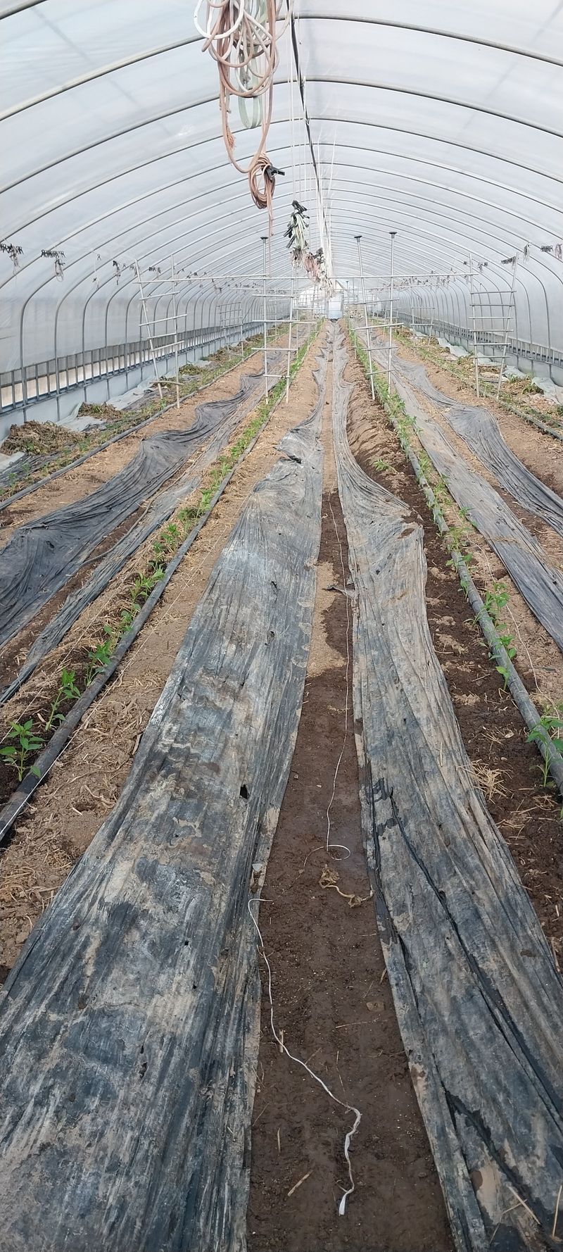 고추정식 후 고추 유인줄 인양 삼각대 설치작업 완료 ㆍ작업중 눈에서 파리가 날라다닌다 앵 모지ᆢ