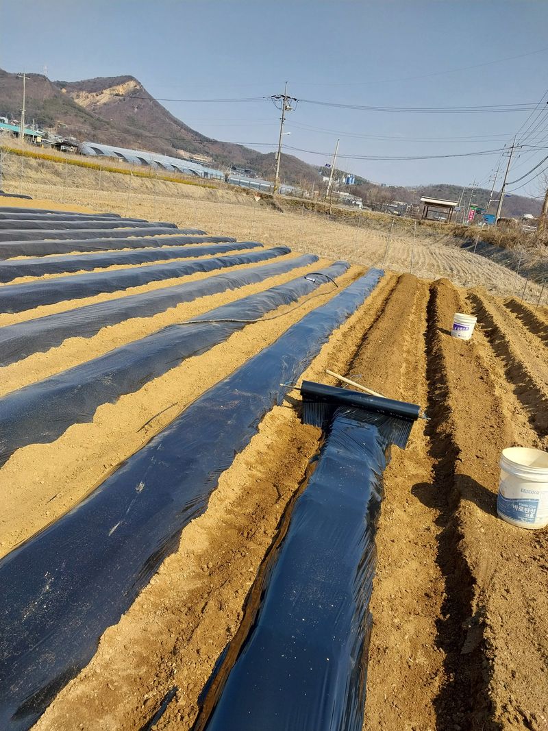 감자 수확후 비닐멀칭작업 및 제초매트 깔기작업 건조 양배추 제분