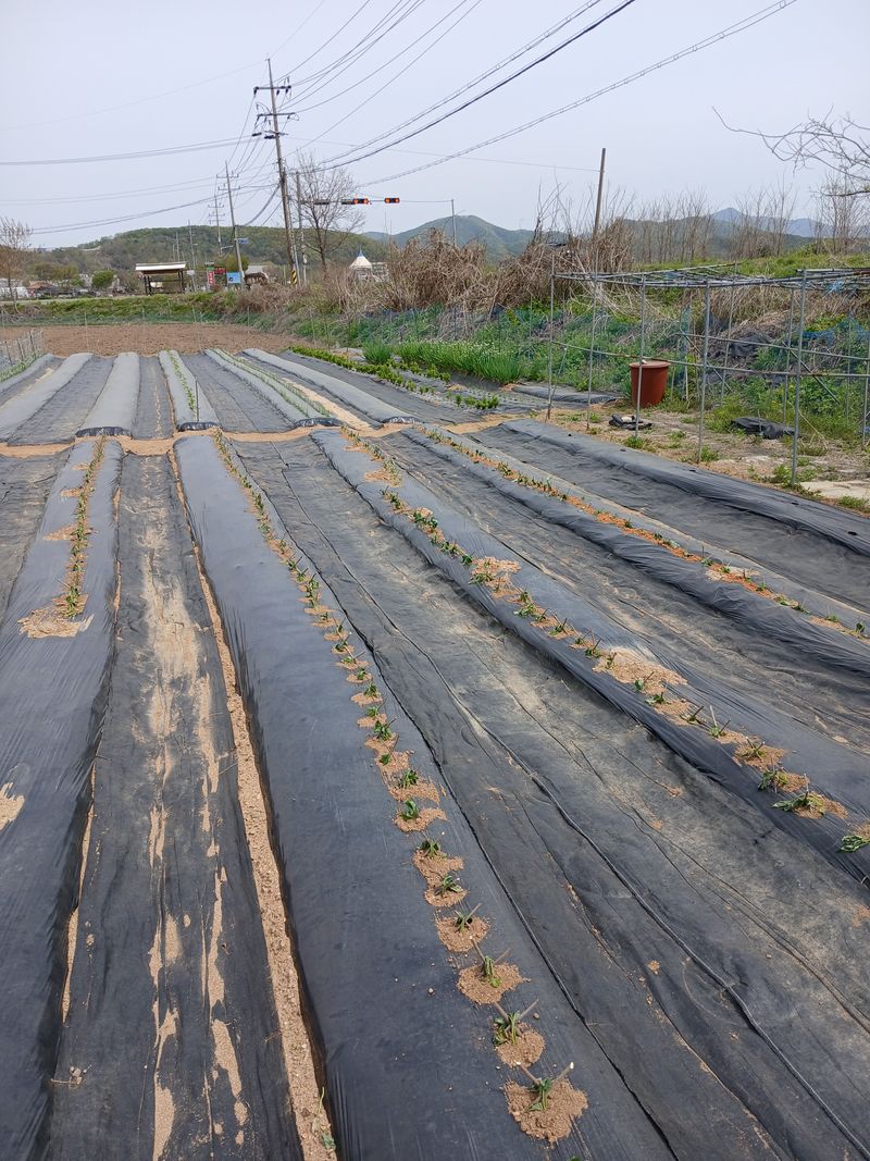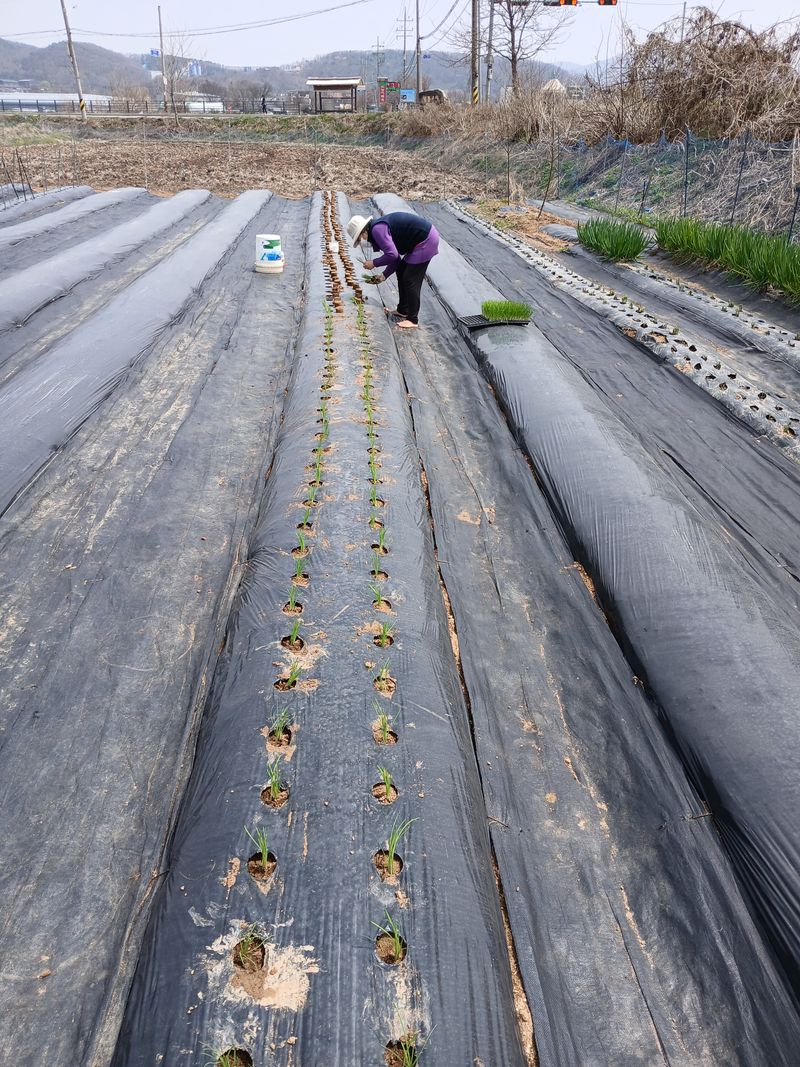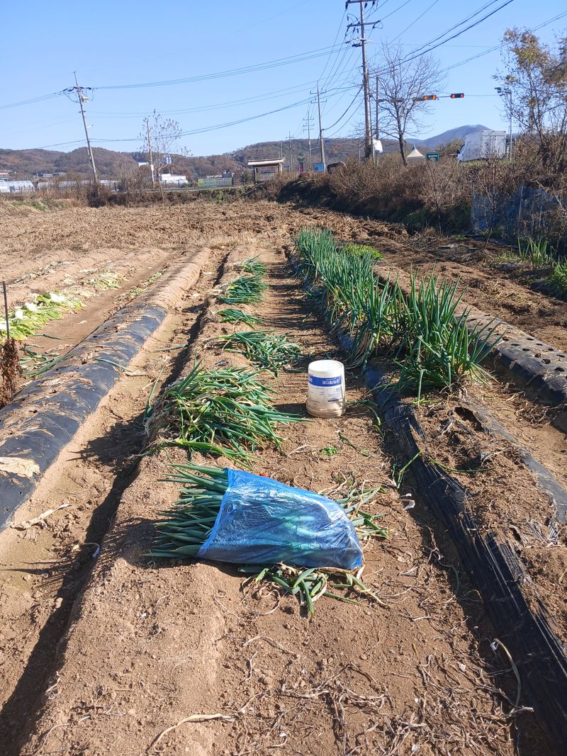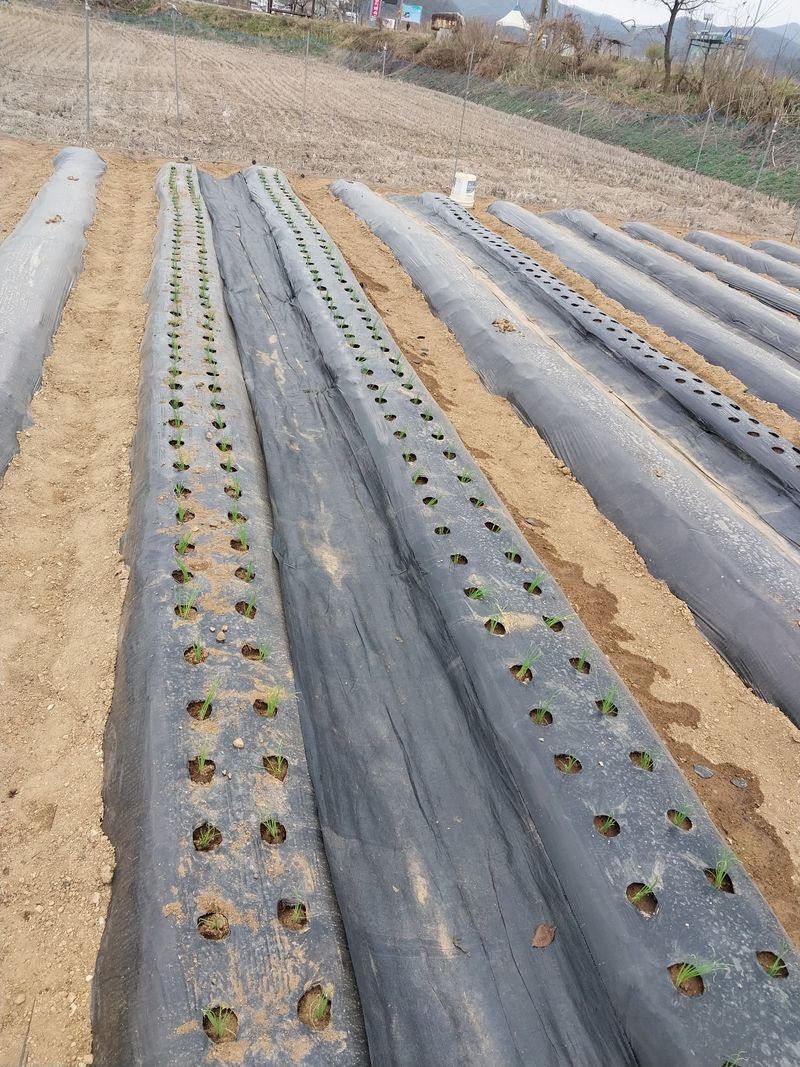 대파 무름병 발생 , 대파 60구 다시 정식 대파 무름병 약 : 살균제 젠토마이신 , 살충제 삼공 디메토 투약 비닐멀칭작업, 제초매트 깔기작업 근대 파종