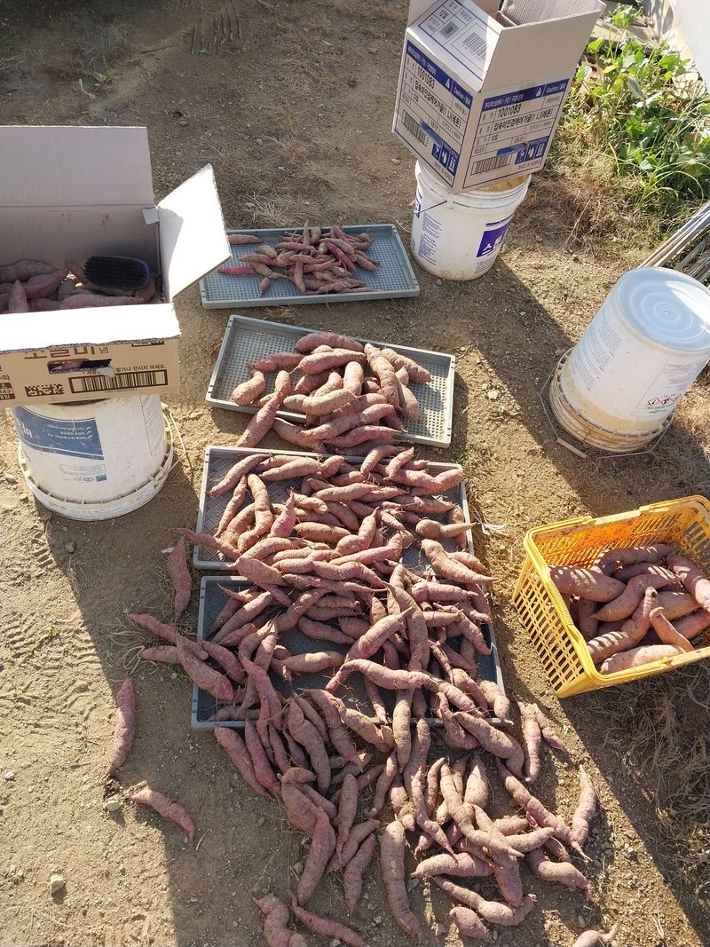 땅콩 세척후 건조기에 꿀고구마 일부수확