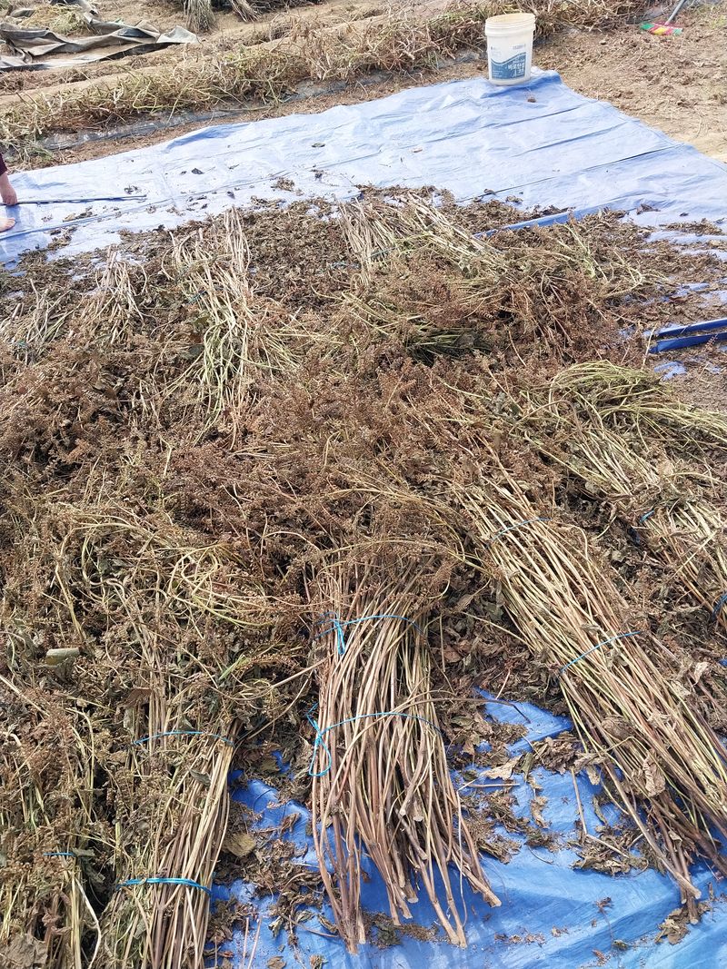양배추 수확후 세척 건조기로 고정핀및 제초매트, 흑색비닐 걷어내기