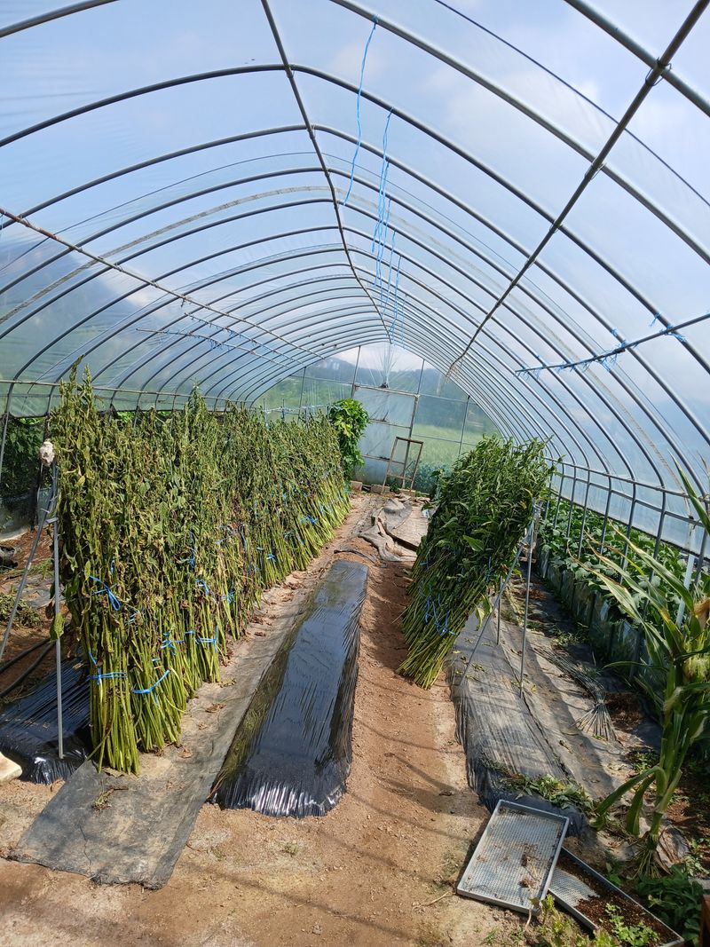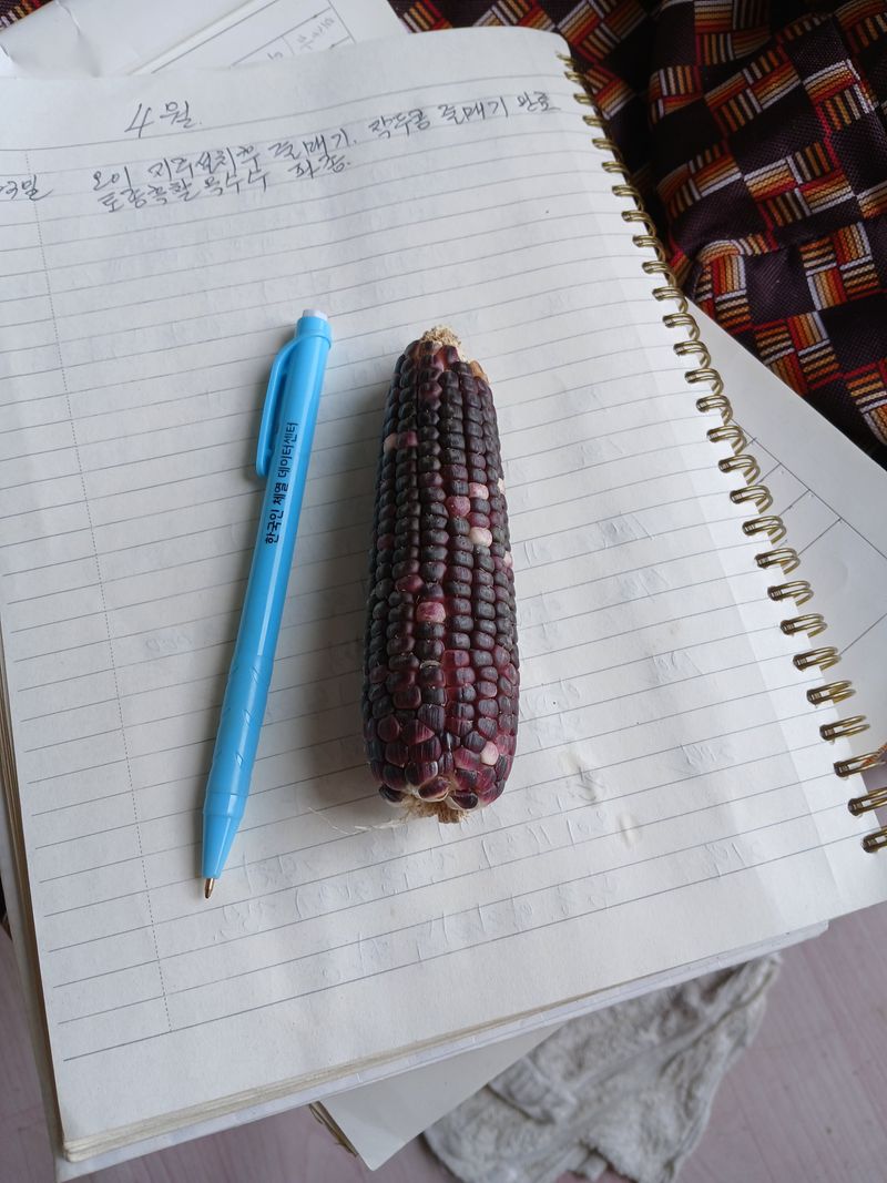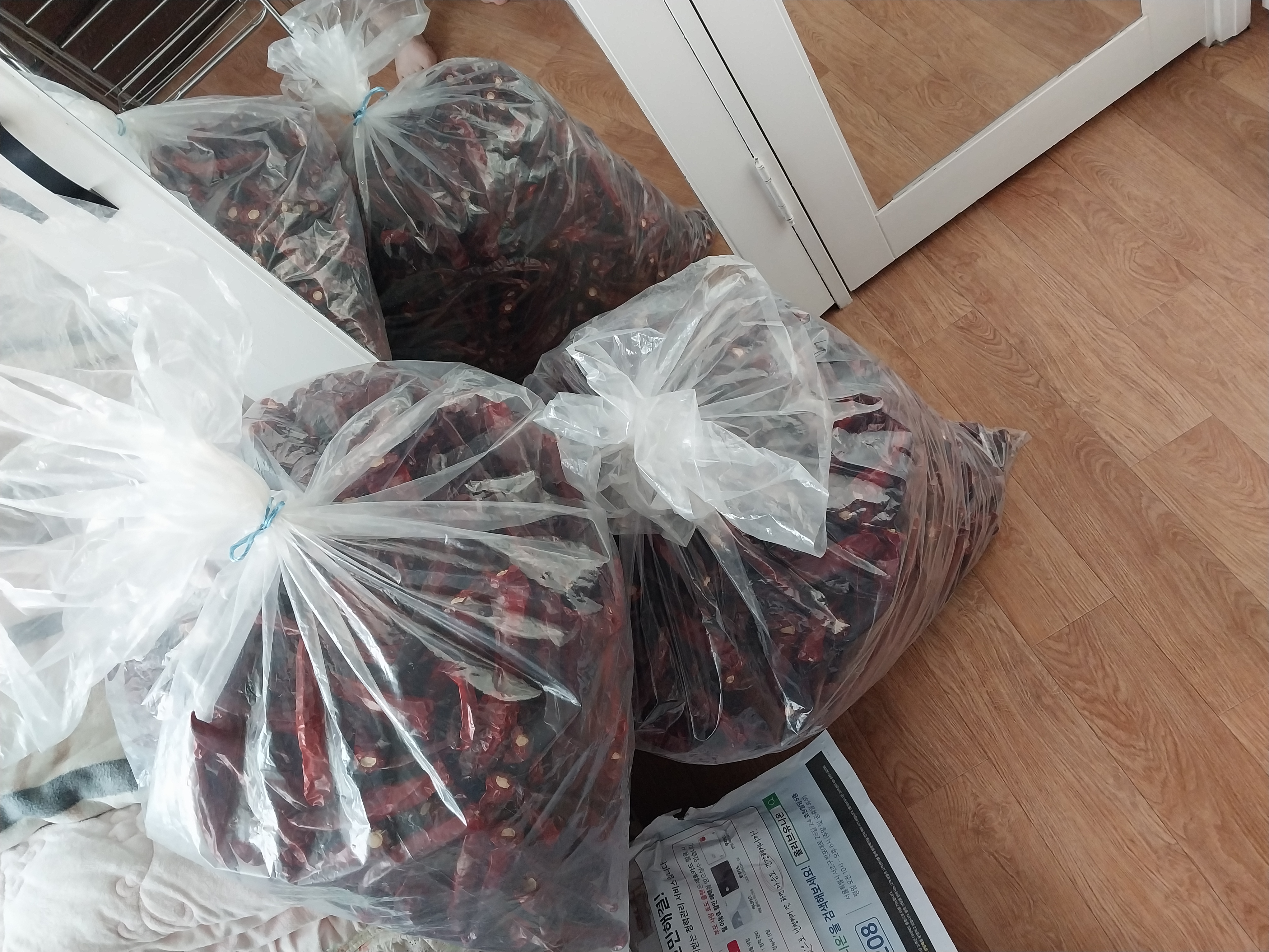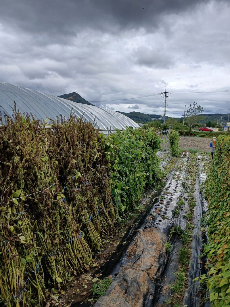 얼룩찰옥시기 수확후 옥수수대 잘라내기 2차 고추건조양 : 6.4km ( 60도에 70시간 건조) 가지수확
