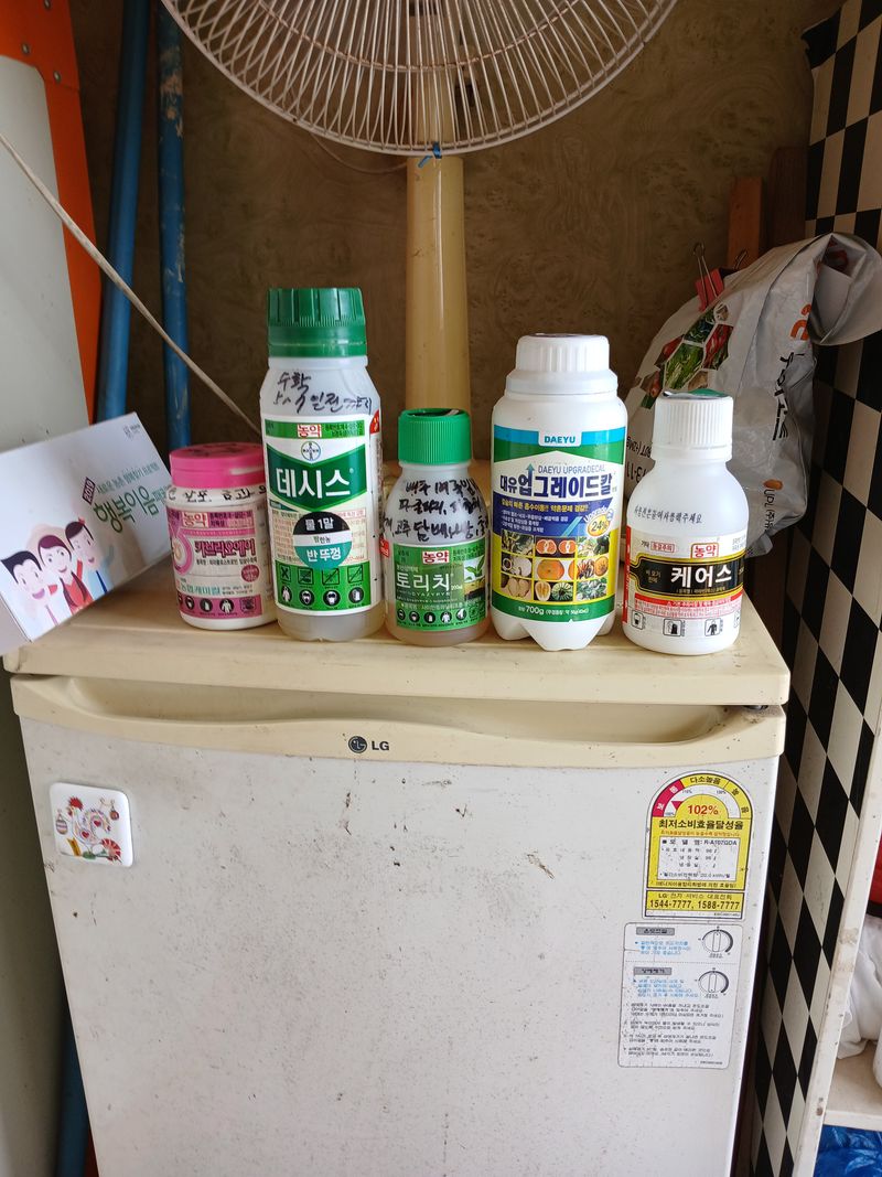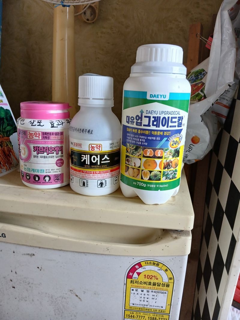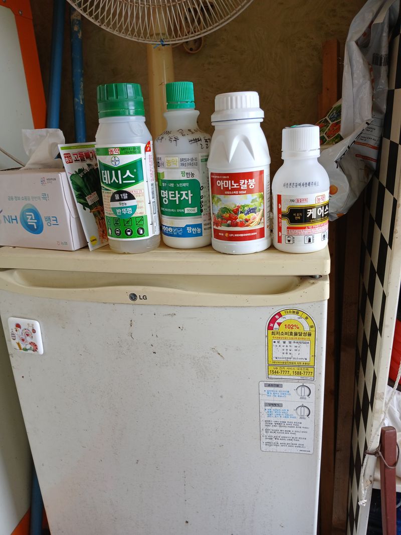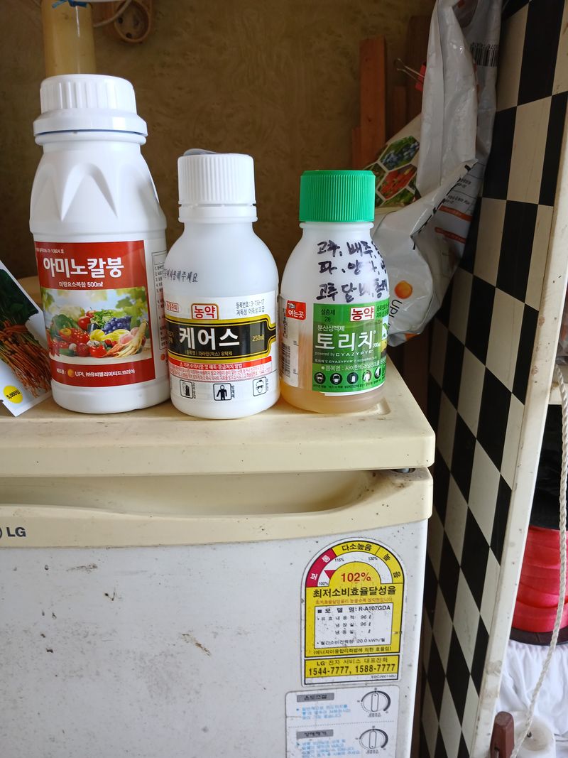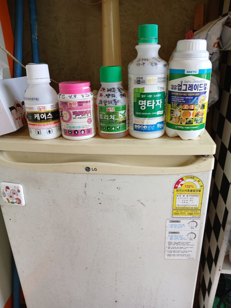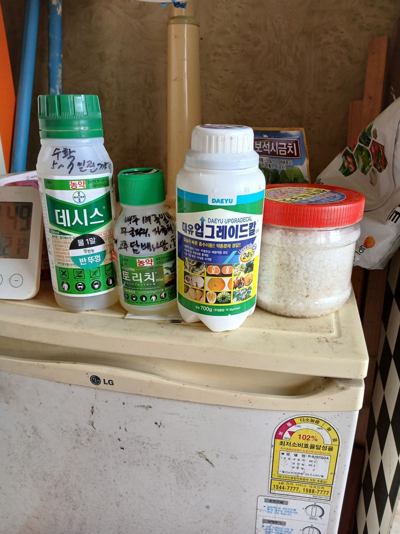 고추 세척후 건조기에 고추 탄저병 예방살포 힐링샷 10ml, 대유칼슘 제초작업 및 제초제 살포