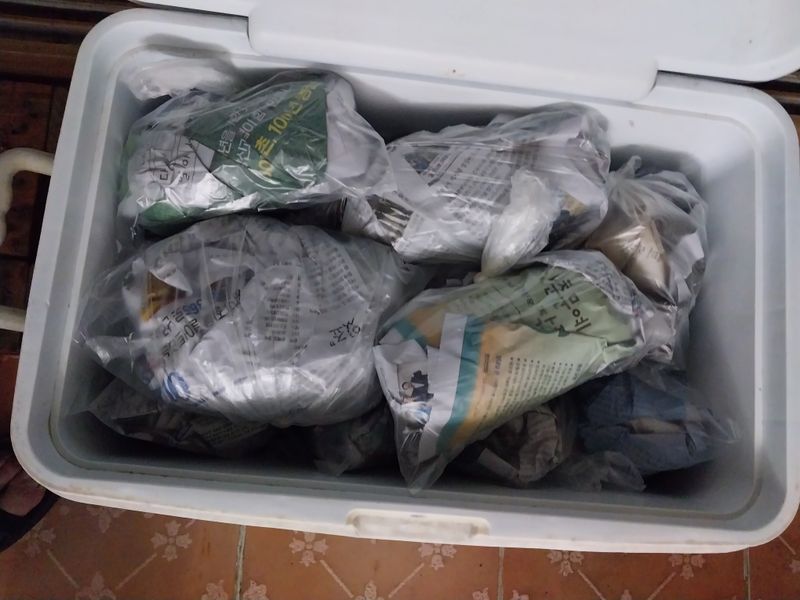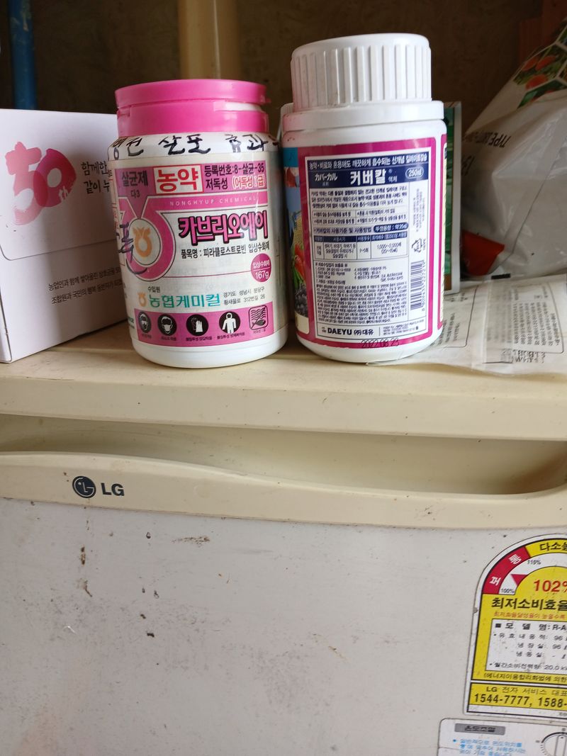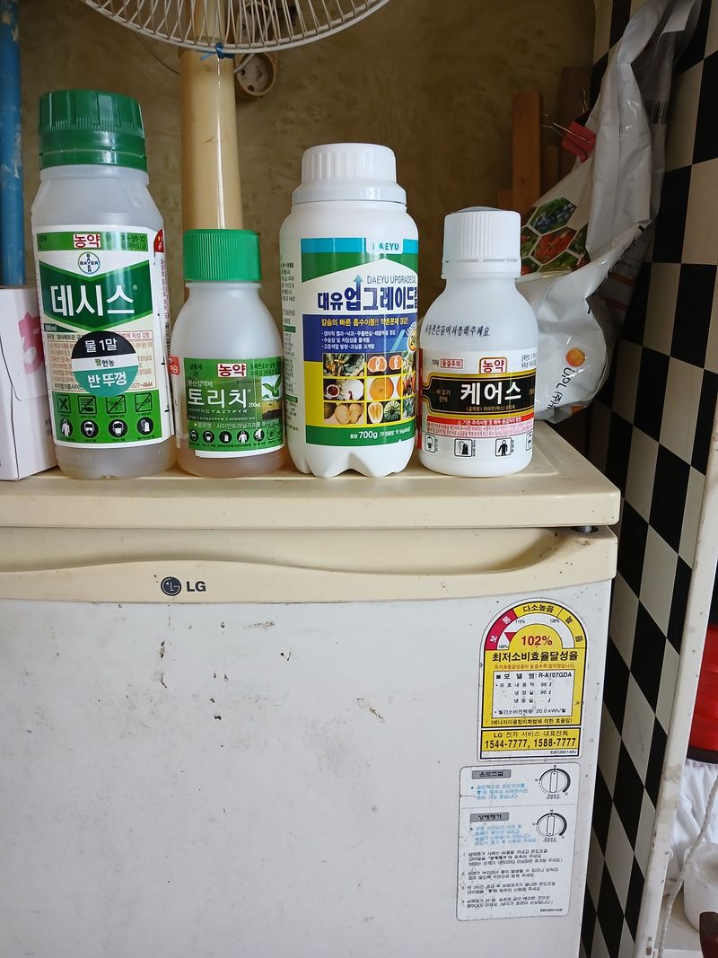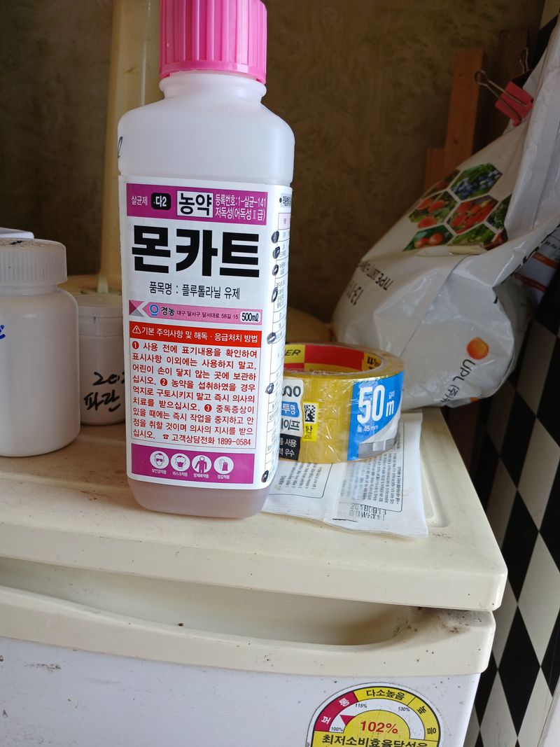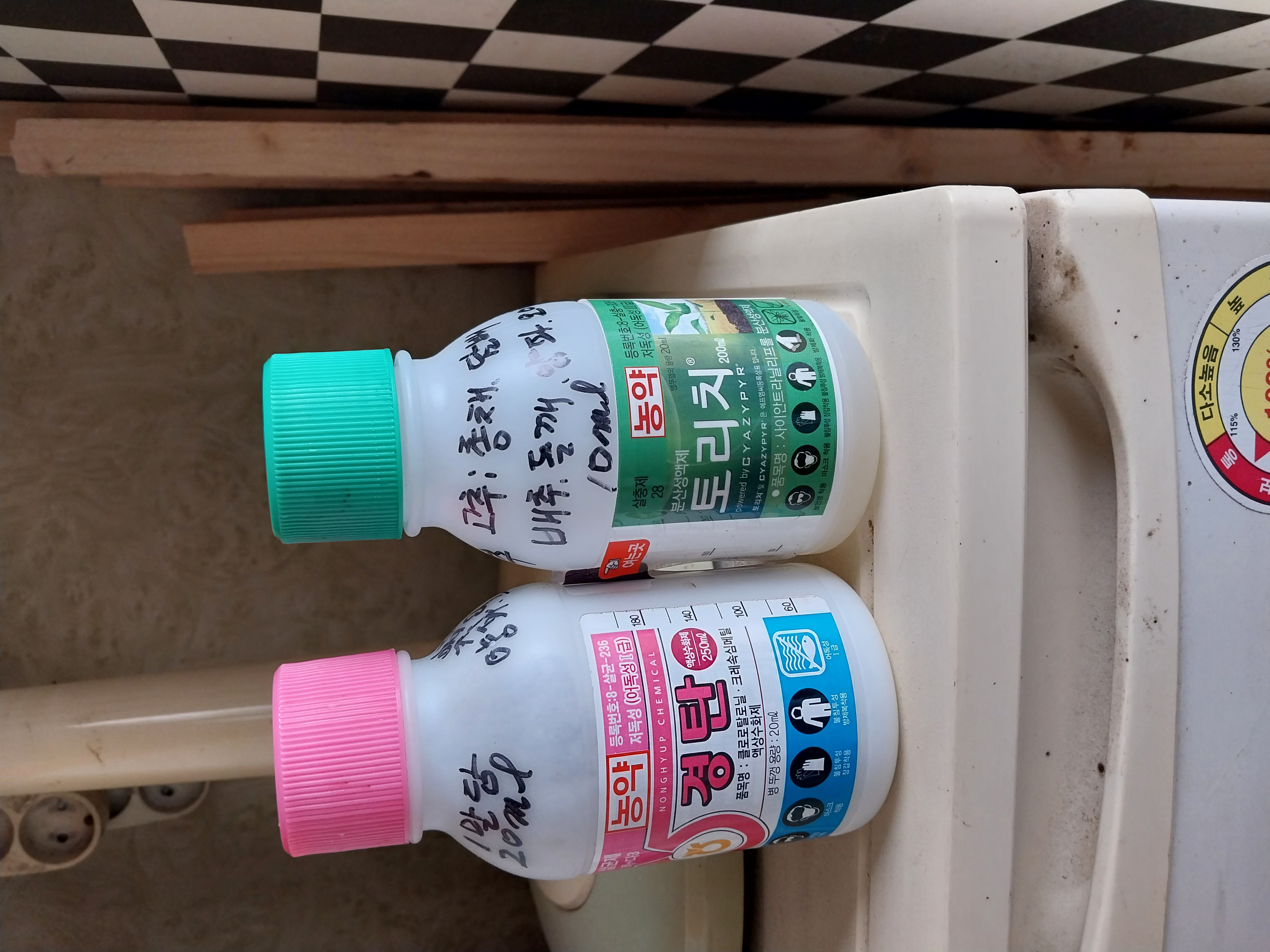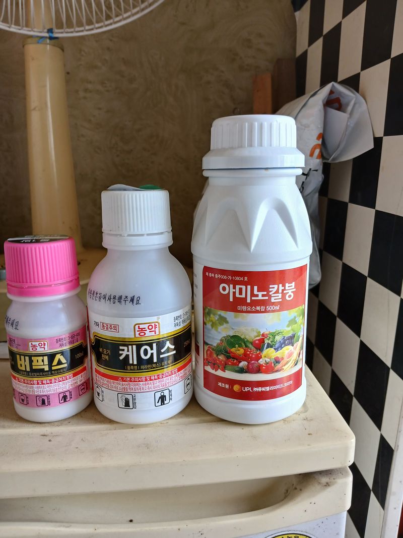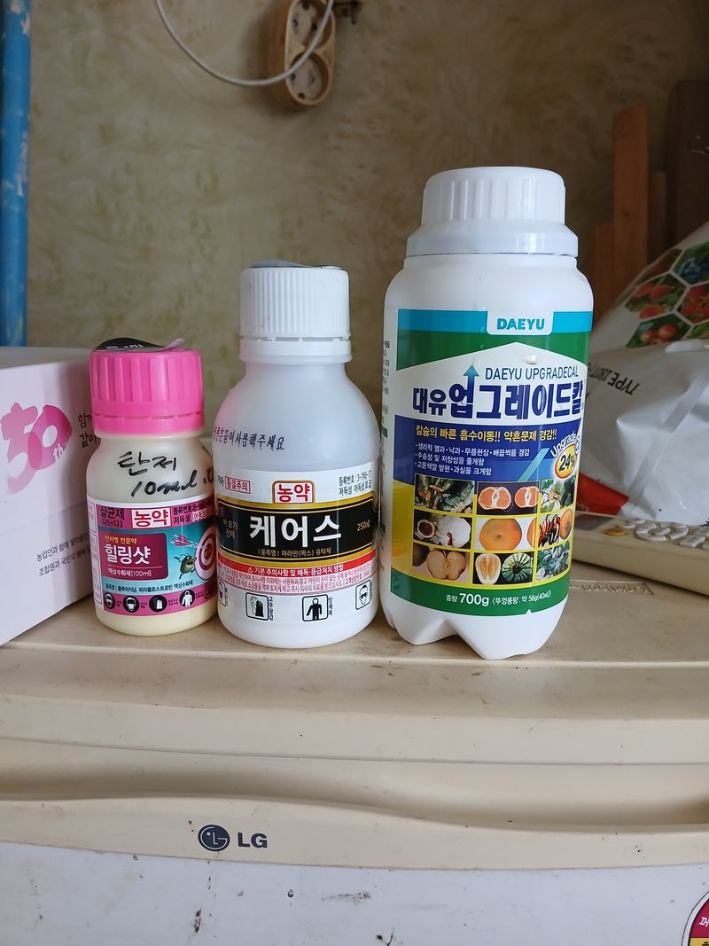 고추 세척후 건조기에 고추 탄저병 예방살포 힐링샷 10ml, 대유칼슘 제초작업 및 제초제 살포