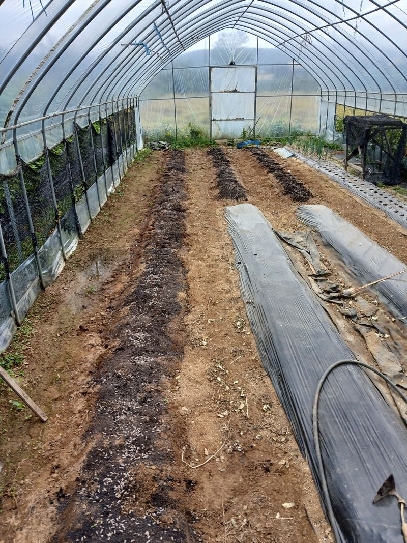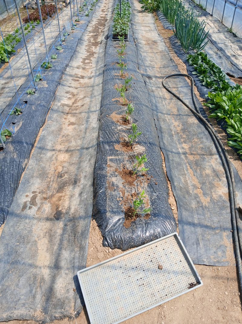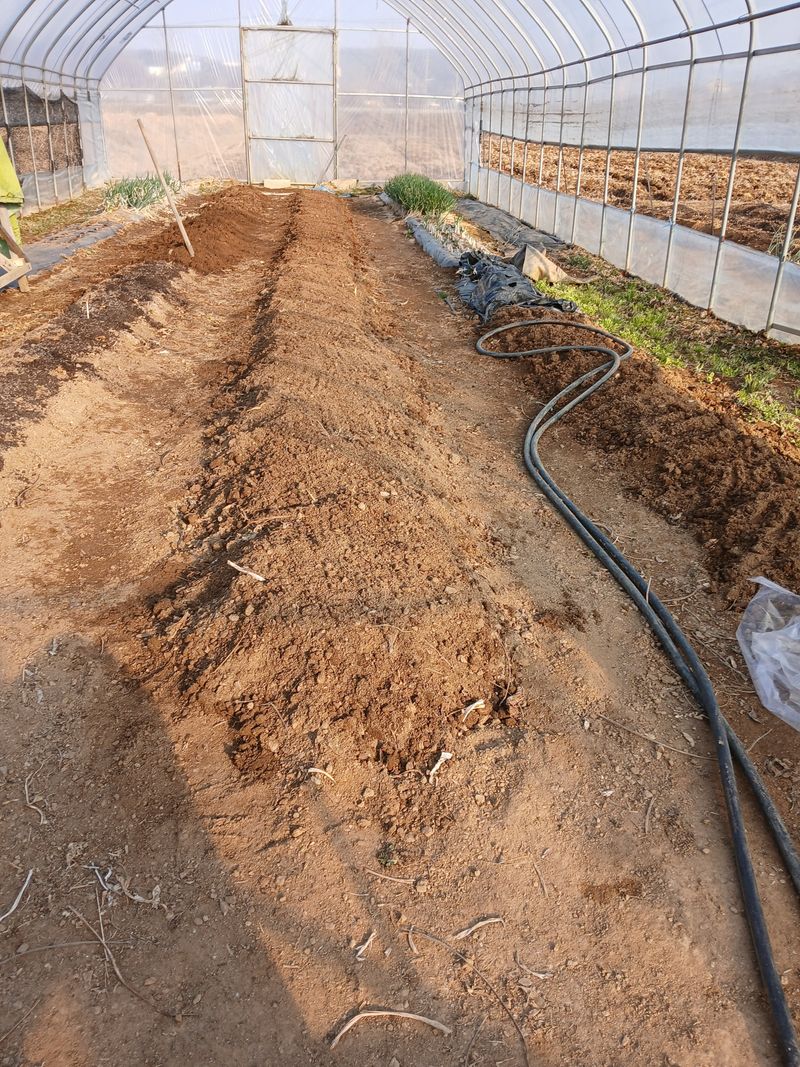 하우스내 이랑 경운작업 후 치마아욱, 쪽파 파종
