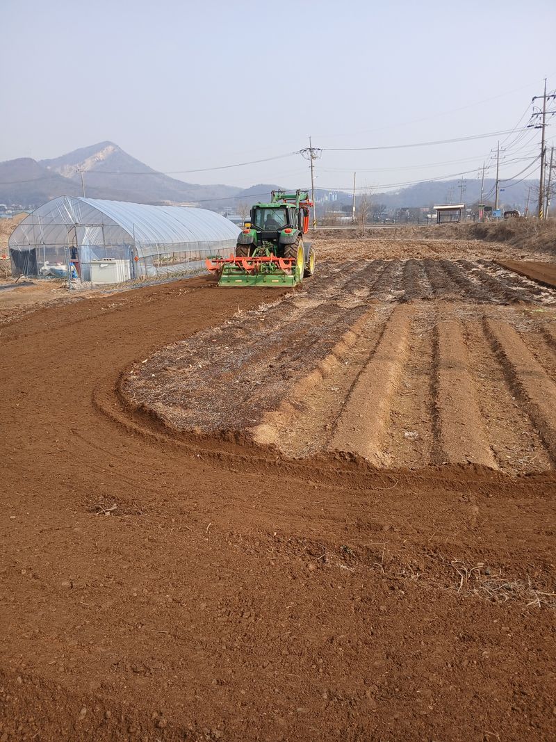 밤콩 파종후 치마아욱 수확 하우스옆 퇴비및 토양살충제 살포후 경운작업