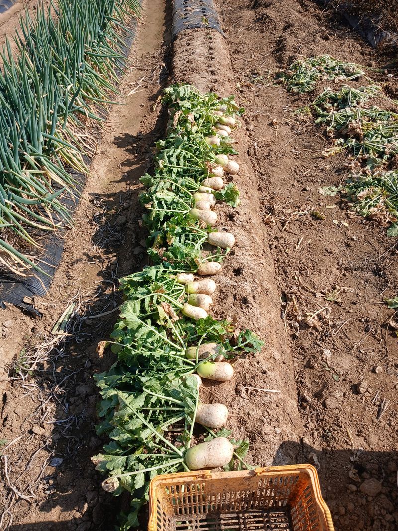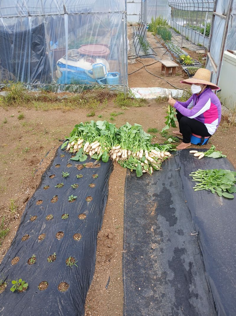 김장무 솎아내기 비닐멀칭및 제초매트 걷어내기