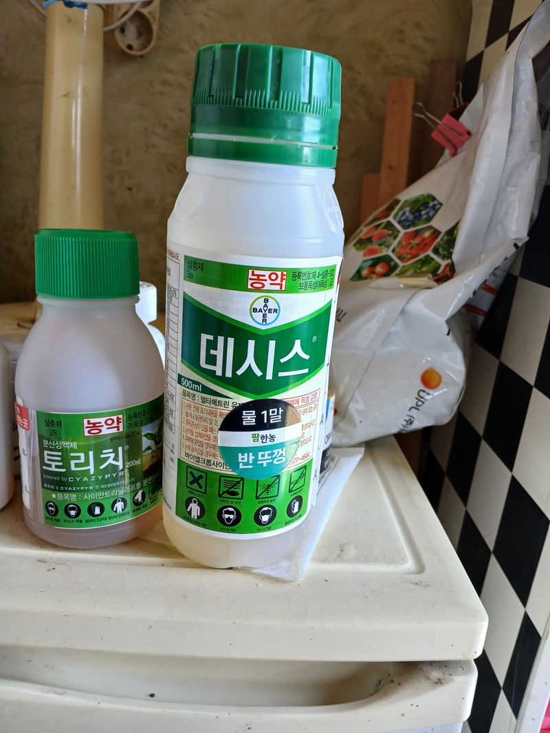 데시스: 고추 담배나방 토리치: 고추 총채벌레,파굴파리,파총채벌레 각각 10ml씩 살포 밭 주변 제초제 살포
