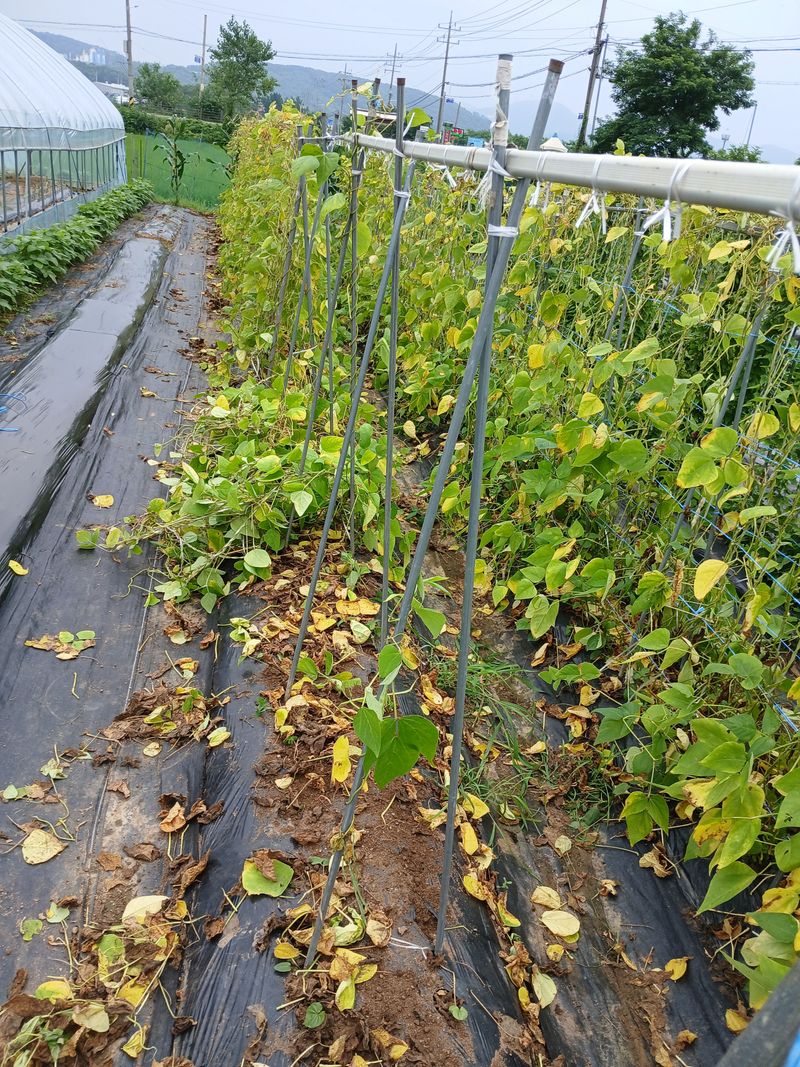 울타리강낭콩 수확 및 일부 지주철거 토종파 정식