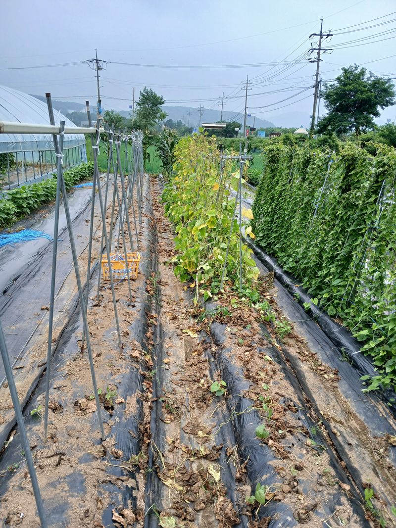 고추 탄저병,횐가루병, 총채벌레, 담배나방 살포 살균제 : 선가드, 오티바 10ml 살충제 : 다트롤 20ml, 명타자 :20ml 콩, 옥수수, 들깨, 오이, 녹두 살포 녹두 꼬투리 따기