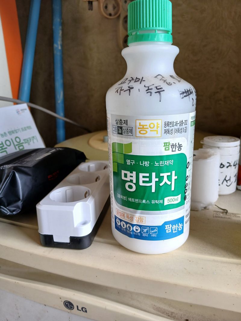 꽈리고추 수확후 고추 탄저병 예방살포 카브리오 에이 7g 옥수수 조명나방, 콩 노린재및 담배나방, 들깨 노린재,자두 노린재, 매실 잎말이나방등 예방살포 명타자 20ml