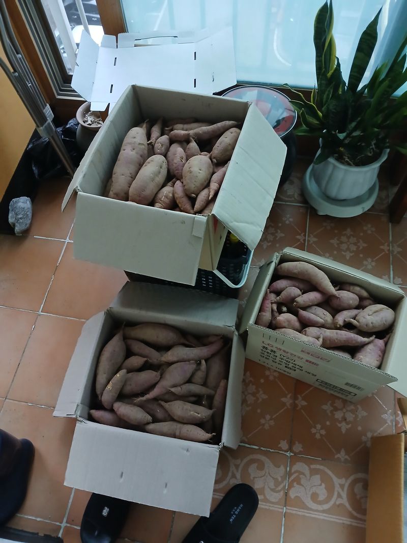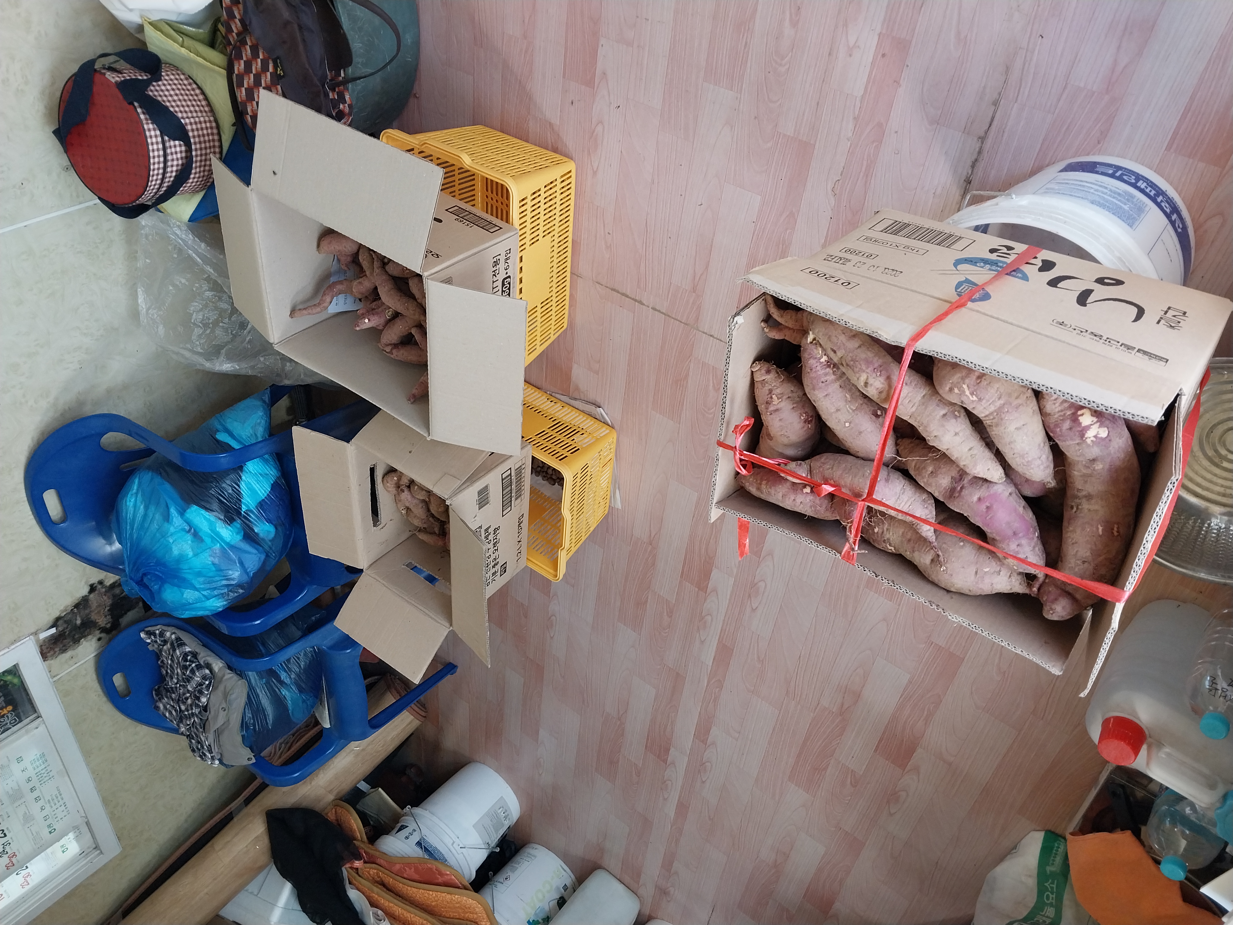 꿀고구마 마지막 수확 3박스 뚝섬적축면상추 트레이 2판이식 하우스내 부추파종
