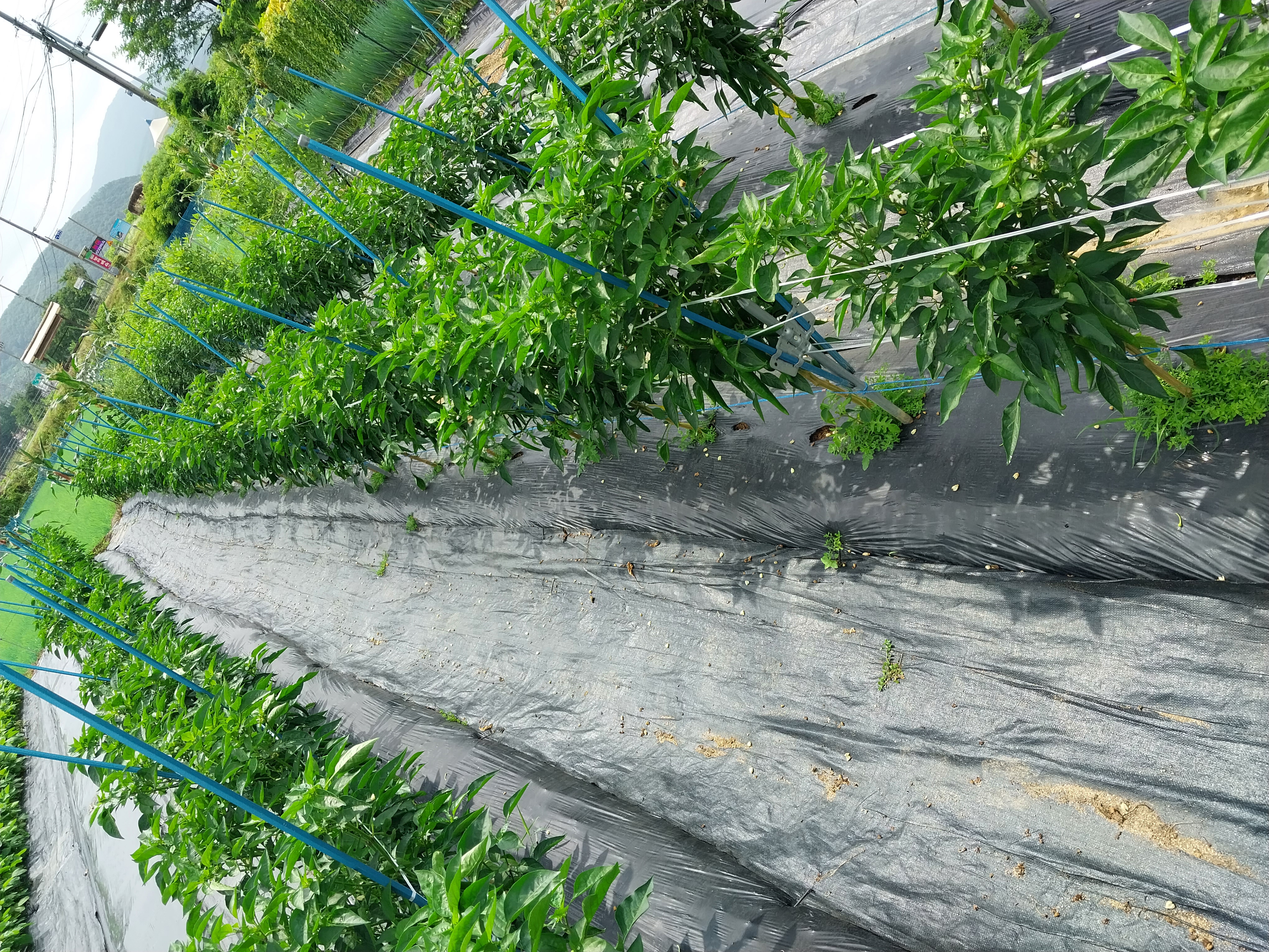하우스내 이랑만들기 가축분퇴비 퇴비 들깨 지주설치및 꽈리고추 수확 고추 탄저병, 역병, 담배나방, 배추횐나비 예방살포 카브리오 에이 7g , 데시스 40ml , 고농축칼슘 40ml 제초작업