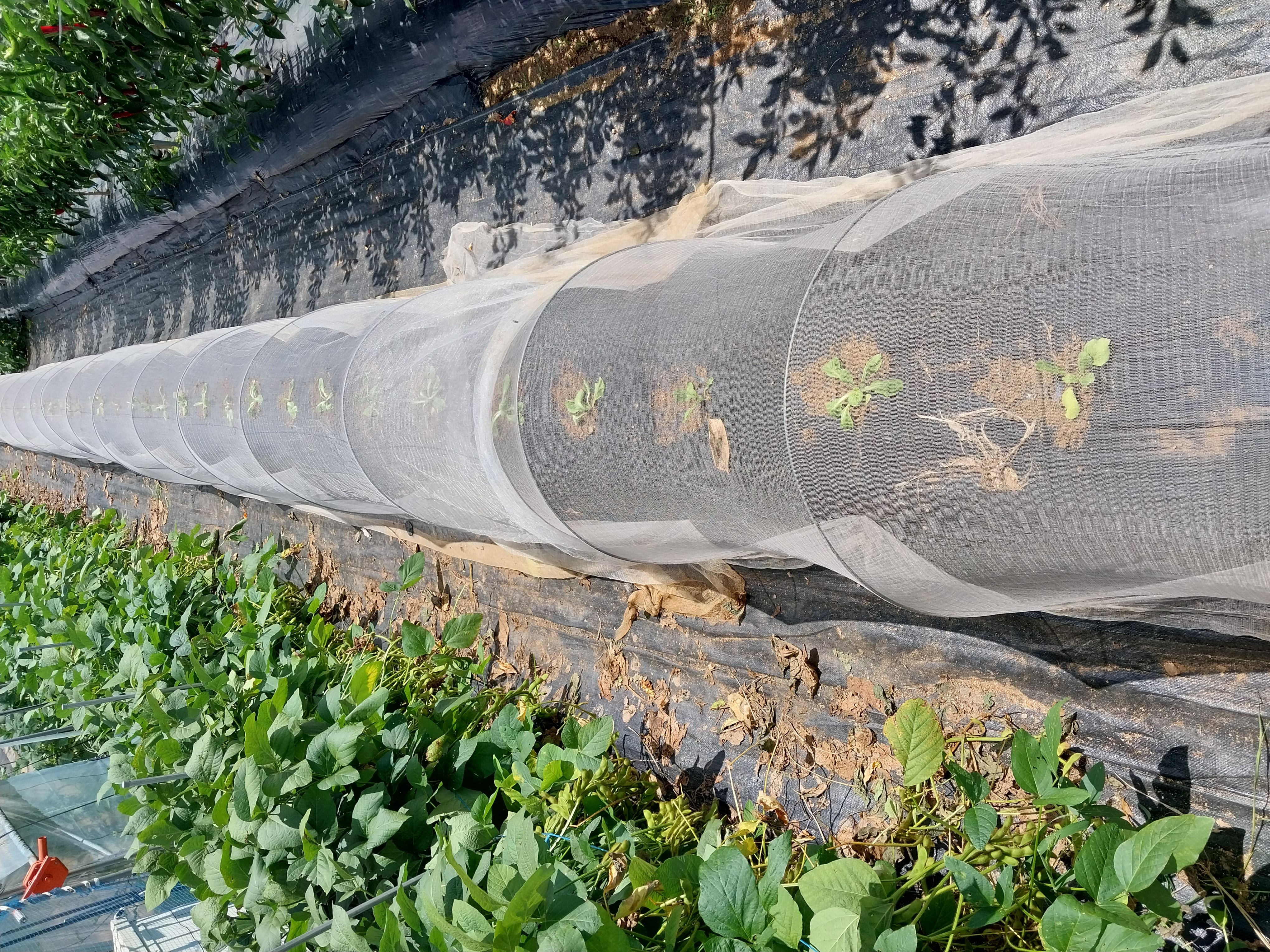 울타리강낭콩 수확 및 양배추 트레이 파종 들깨 일부 정식