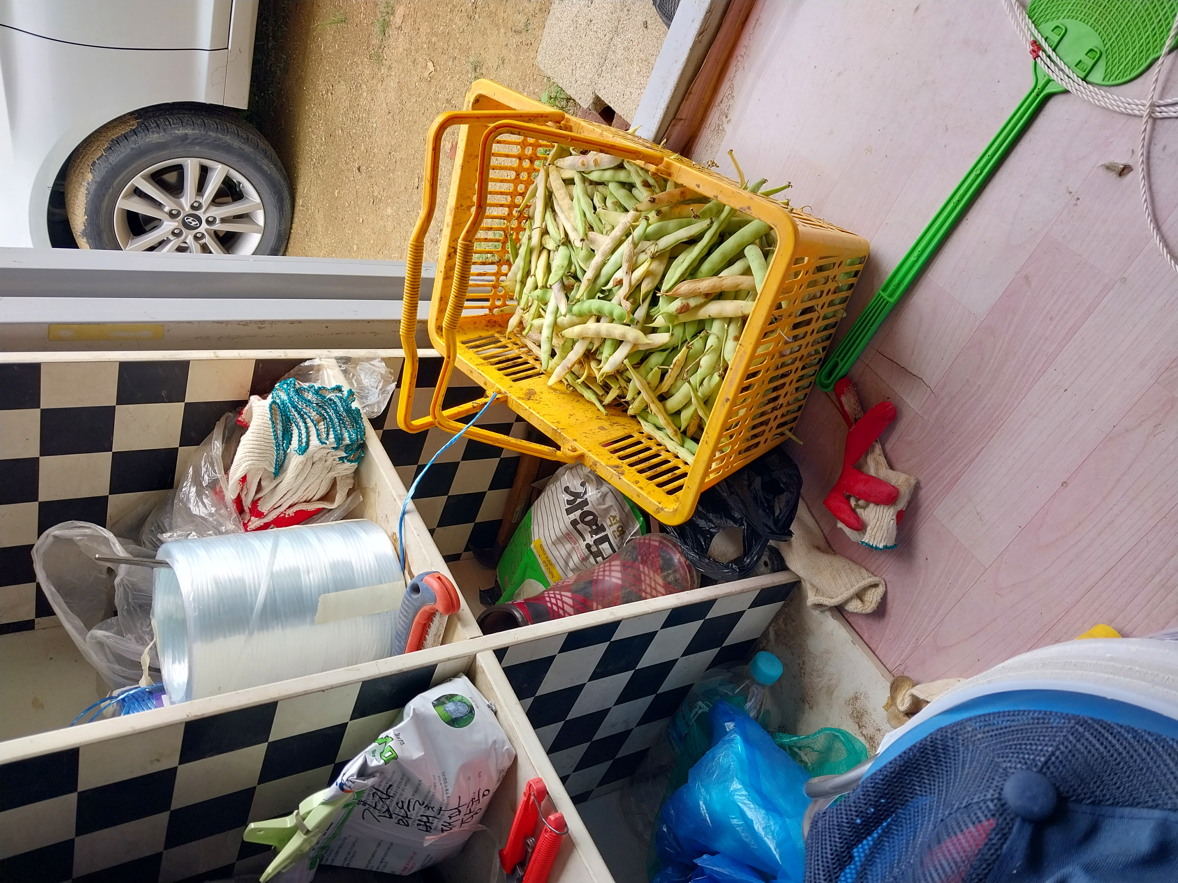 마지막 울타리강낭콩 수확및 덩굴 걷어내기
