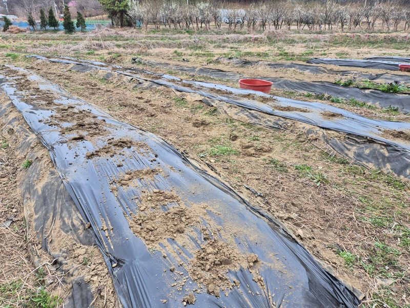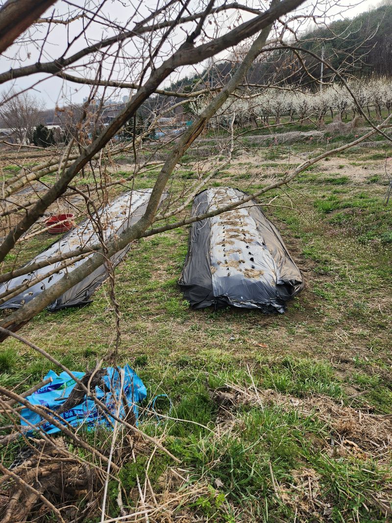 날씨가 흐려서 농사짓기 좋은날 이네요 퇴비주기 멀칭하기 물주기 했습니다