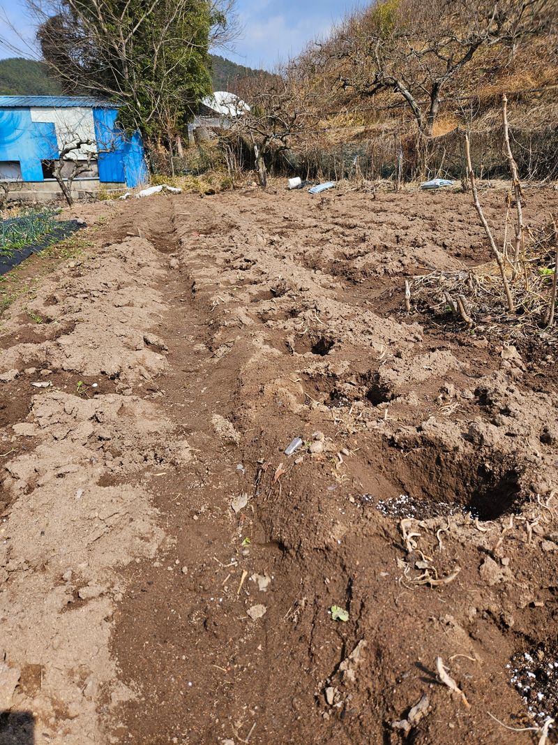 배추심었던밭 비닐다걷고 감자심기준비해놓고 퇴비넣고옴 마늘은풀뽑고 추비해주고나니 비가와서 다행이다