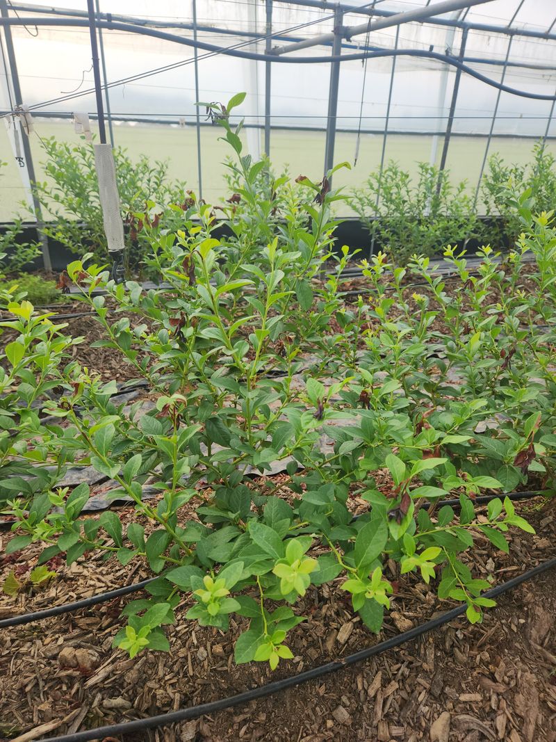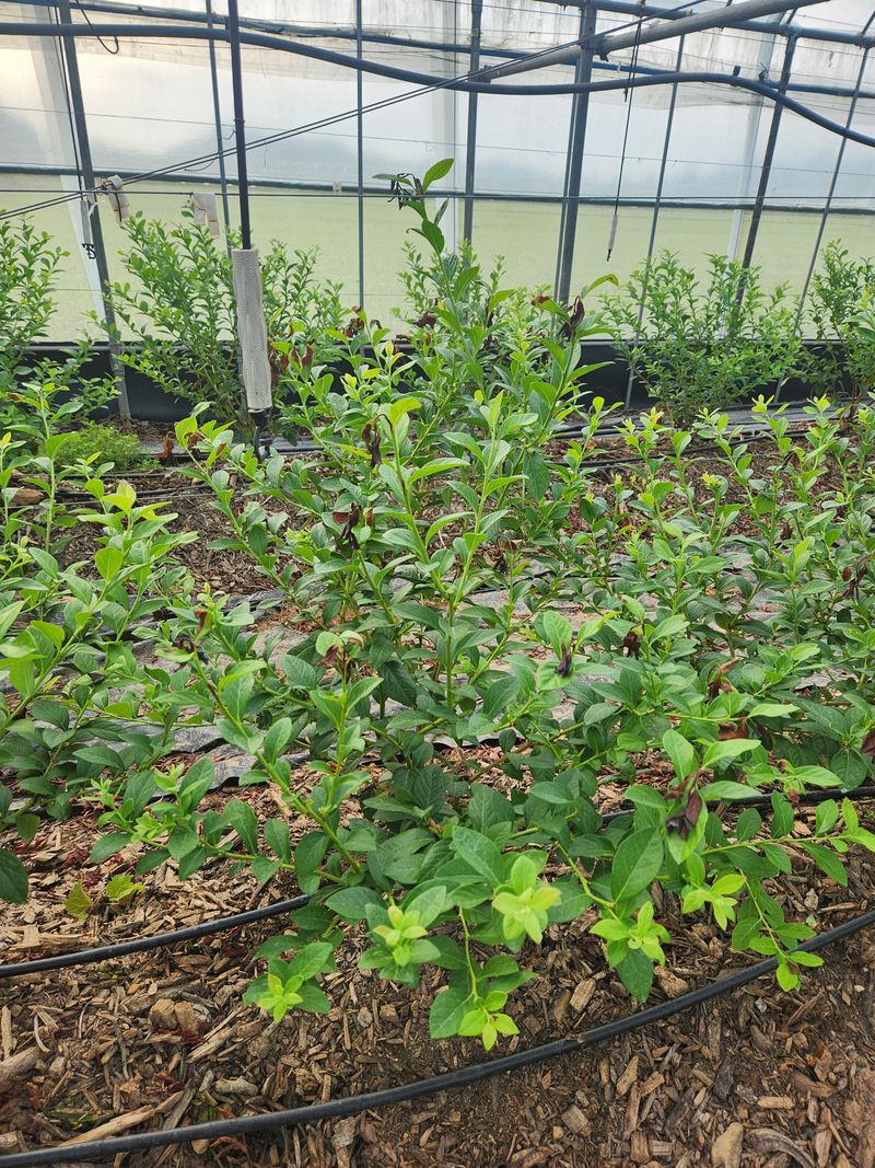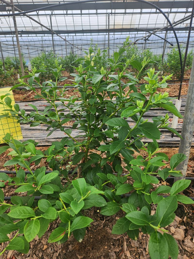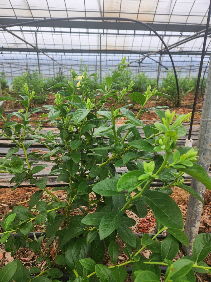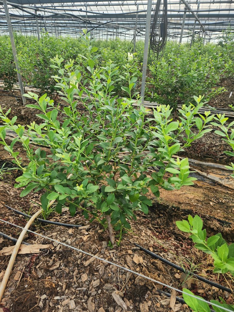 블루베리 농장 비가림하우스 두둑재배. 소나무파쇄목피복처리 오늘작업 순자르기 작업 실시