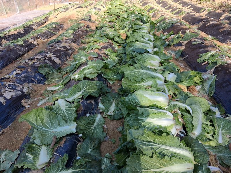 김장배추를 심고난 후부터 비가오기 시작하더니 수홖하기 직전까지 내린빗줄기에 김장거리 무우 배추 쪽파가 수난을 격은 바에. 비교하면 참으로 대견하리 만큼이나 통이 꽉찬 모습에 노심 초사한. 마음이 한순간에행복을 느꼈습니다 배추 180폭중 25섯폭이 무름병 진딧물병으로 ...