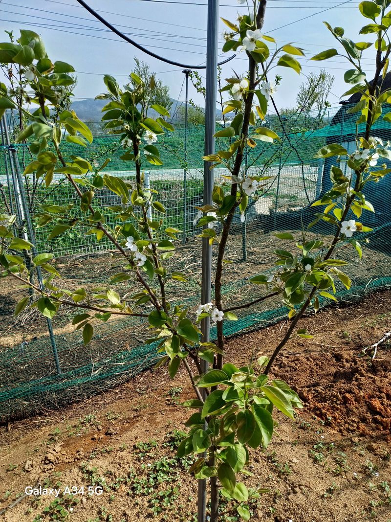 오이 고추외 추가 모종 구입 살균제 유실수 살포. 살구 자두 배 복숭아 사과 순은로 꽃핌