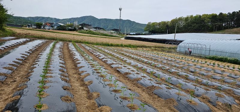 이번 연휴에 고추 250대, 아삭이 10개, 청양 10개, 기타 토마토, 가지, 오이, 호박, 참외, 대파모종까지 식재 완료.
