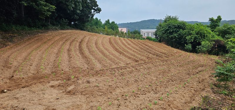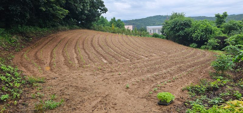 들깨 모종 밭에 이식했습니다.